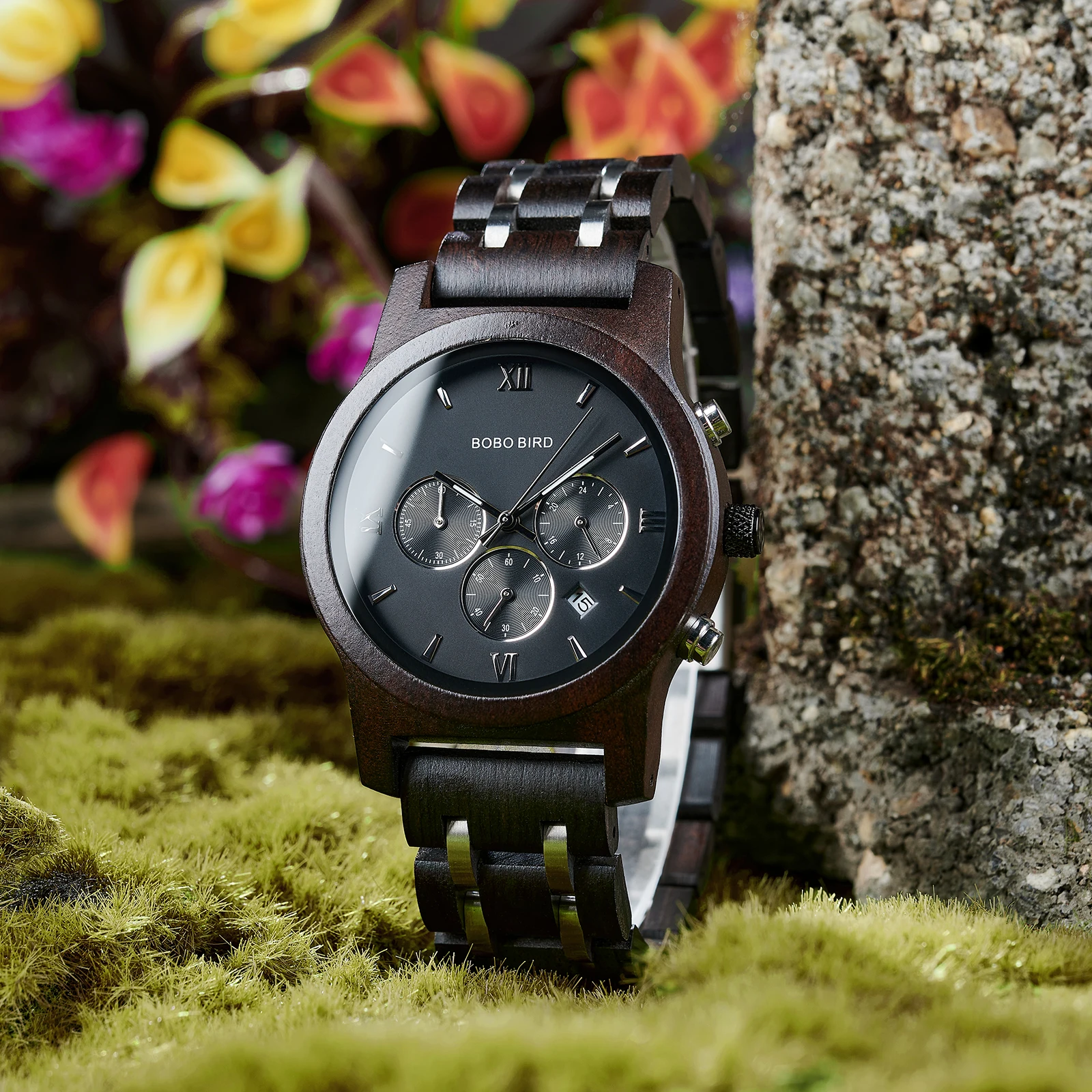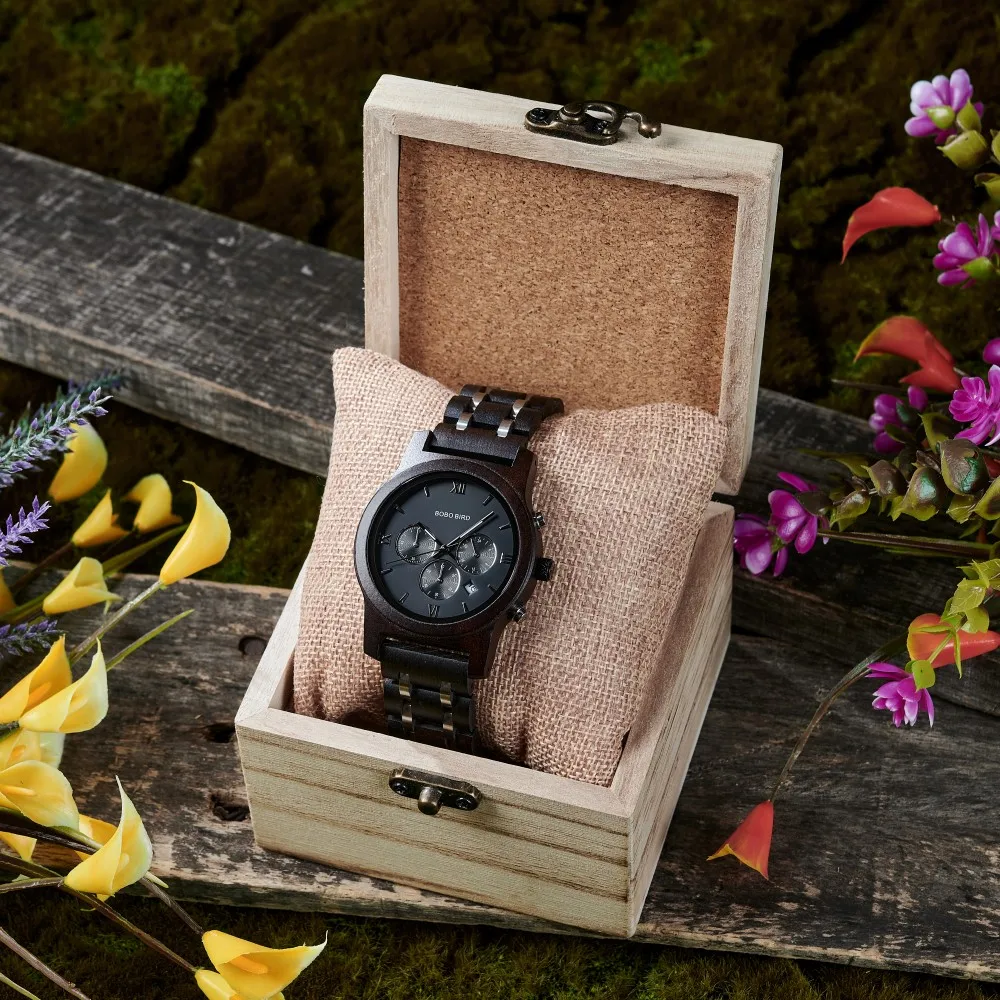 BOBO BIRD – montre de luxe pour hommes, chronographe en métal et bois, à Quartz, Date automatique, Logo personnalisé