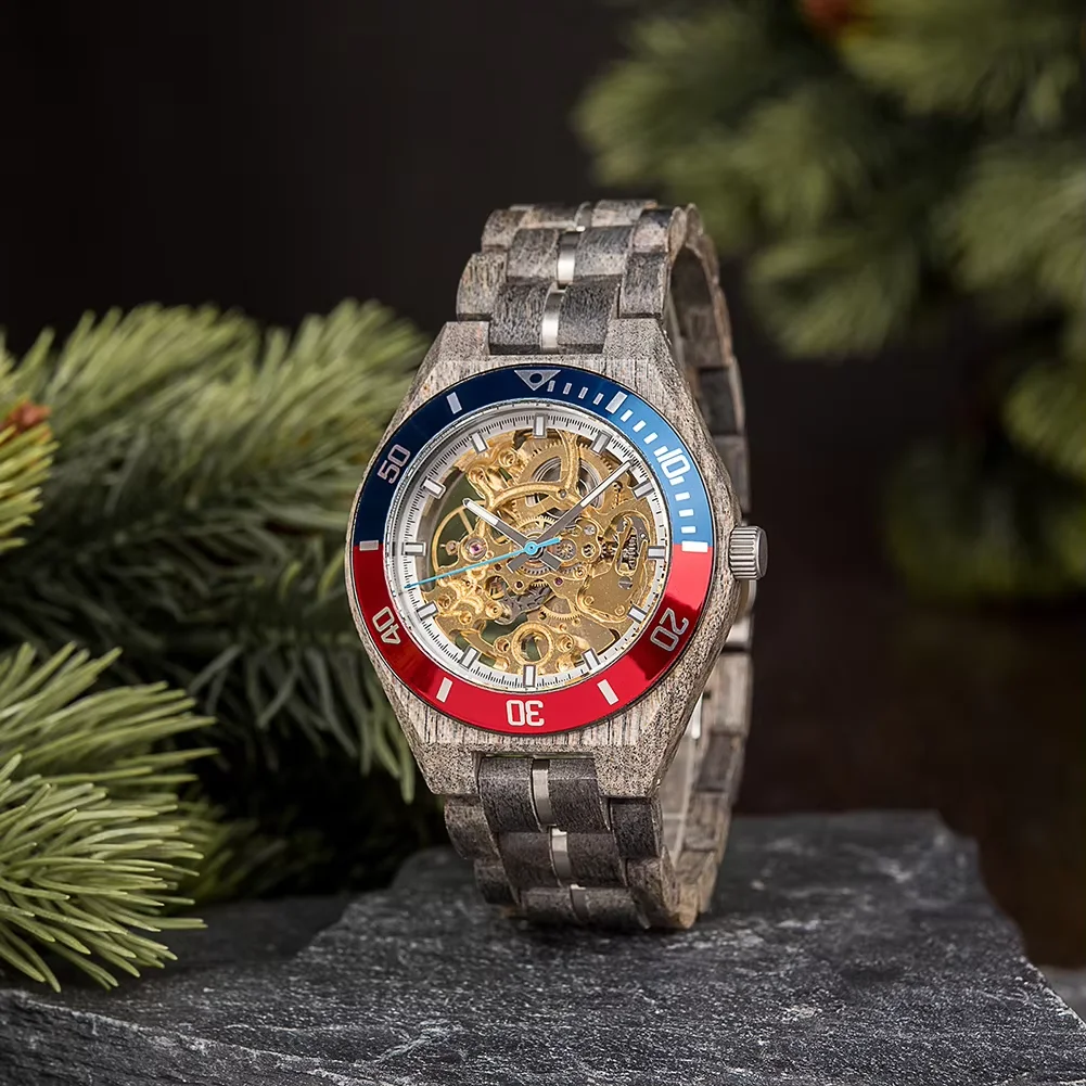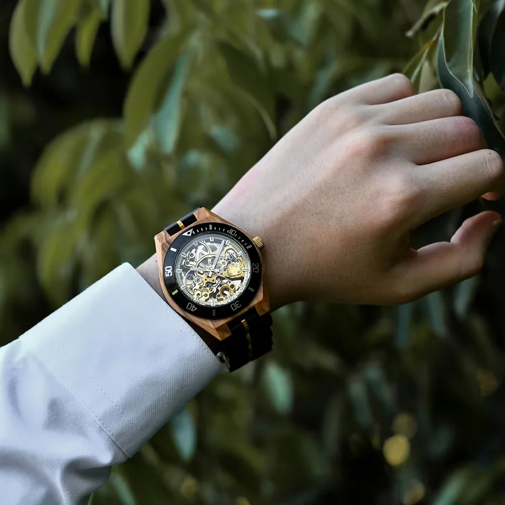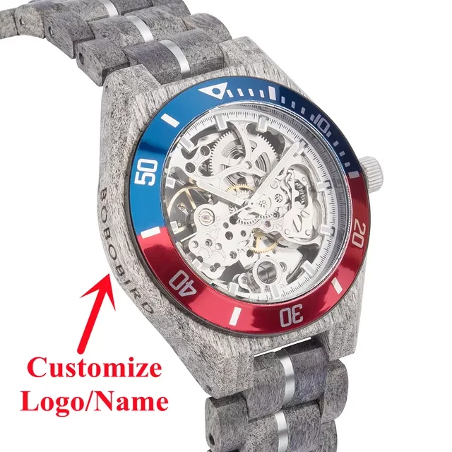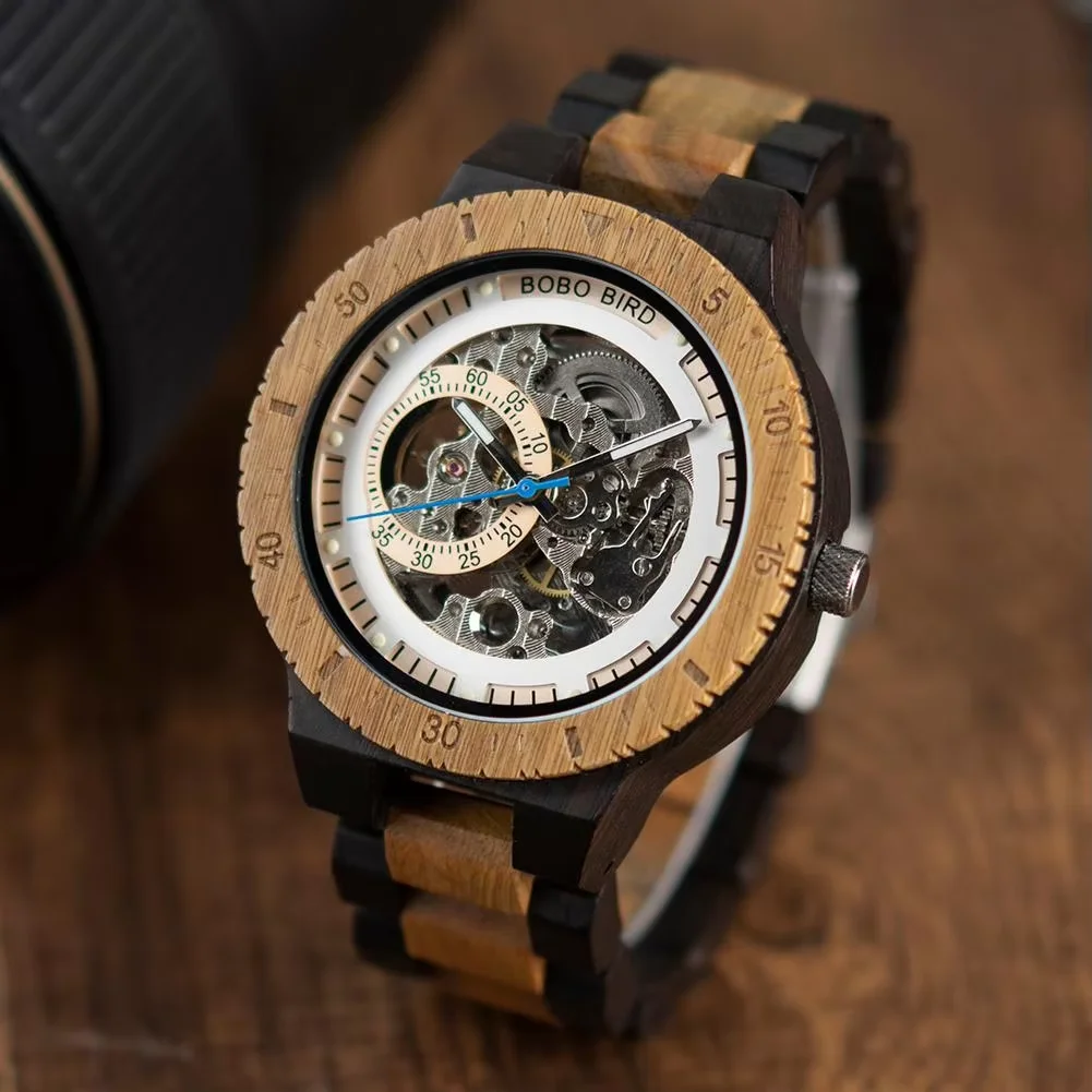 BOBO BIRD Montre mécanique en bois pour hommes Montre-bracelet automatique de luxe Aiguilles lumineuses Chronographe Logo personnalisé Personnaliser Grande boîte-cadeau Support de bijoux élégant en gros et dropship
