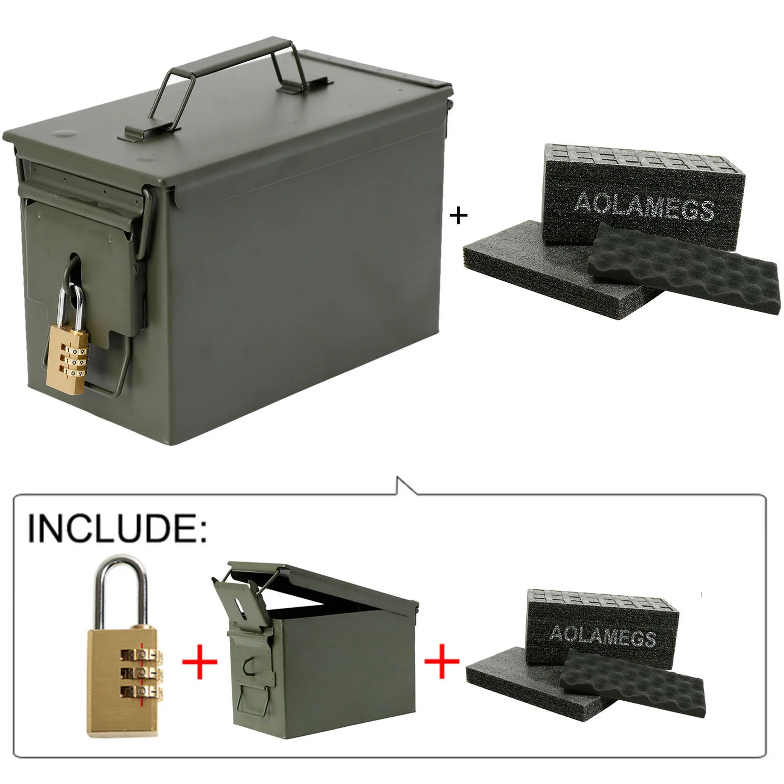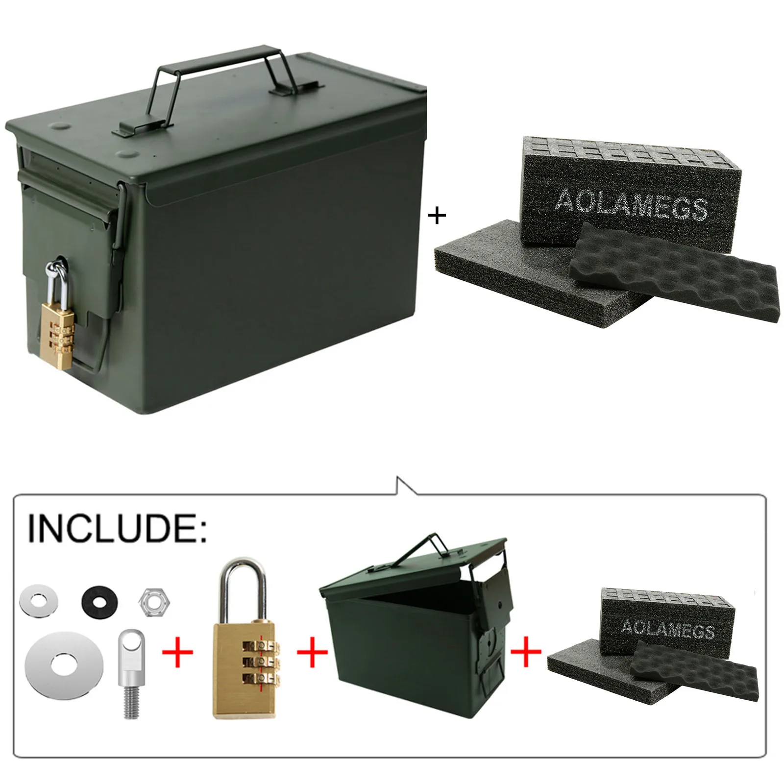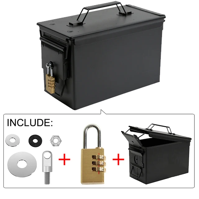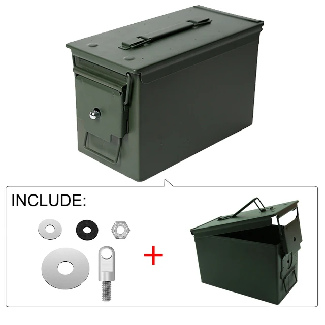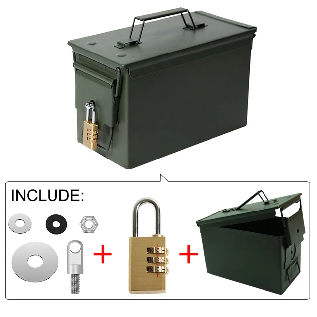Bote de munitions multifonctions en métal 50 Cal Bote de munitions en acier Bote de sécurité tanche Munitions Objets de valeur Stockage Verrouillable Peut Verrouiller les vis