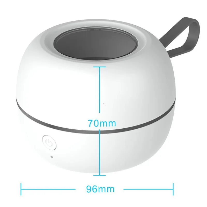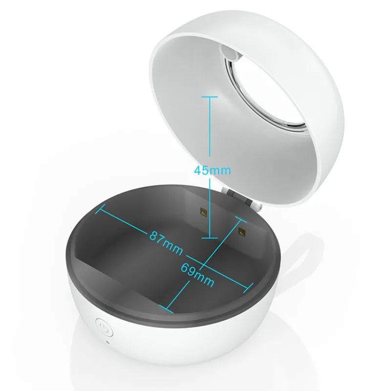 Il s'agit d'une version agrandie du stérilisateur de sucettes. La taille est la suivante. Vous pouvez y ranger 2 sucettes, des prothèses dentaires et des porte-dents. quipé de 4 billes de lampe ultraviolette UVC, la batterie de 800 mAh offre une autonomie de 70 utilisations (3 minutes par utilisation).