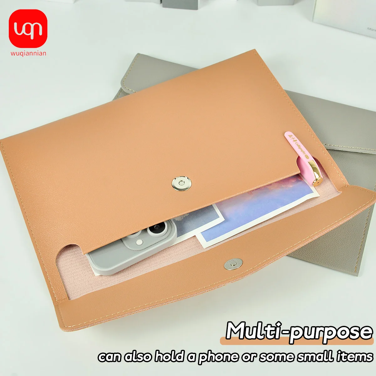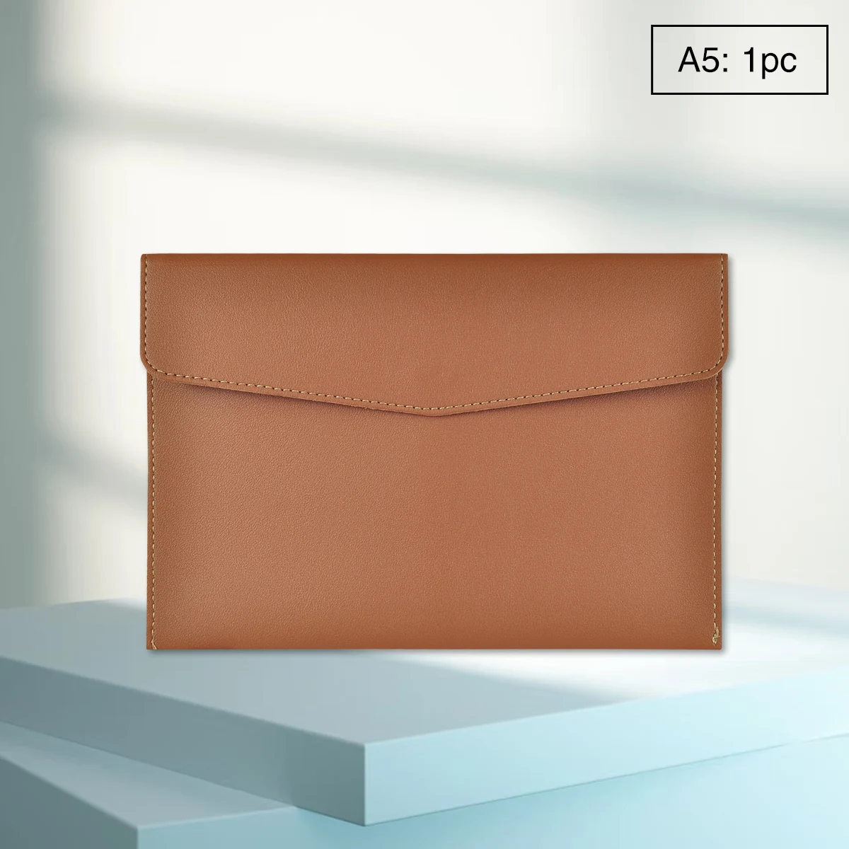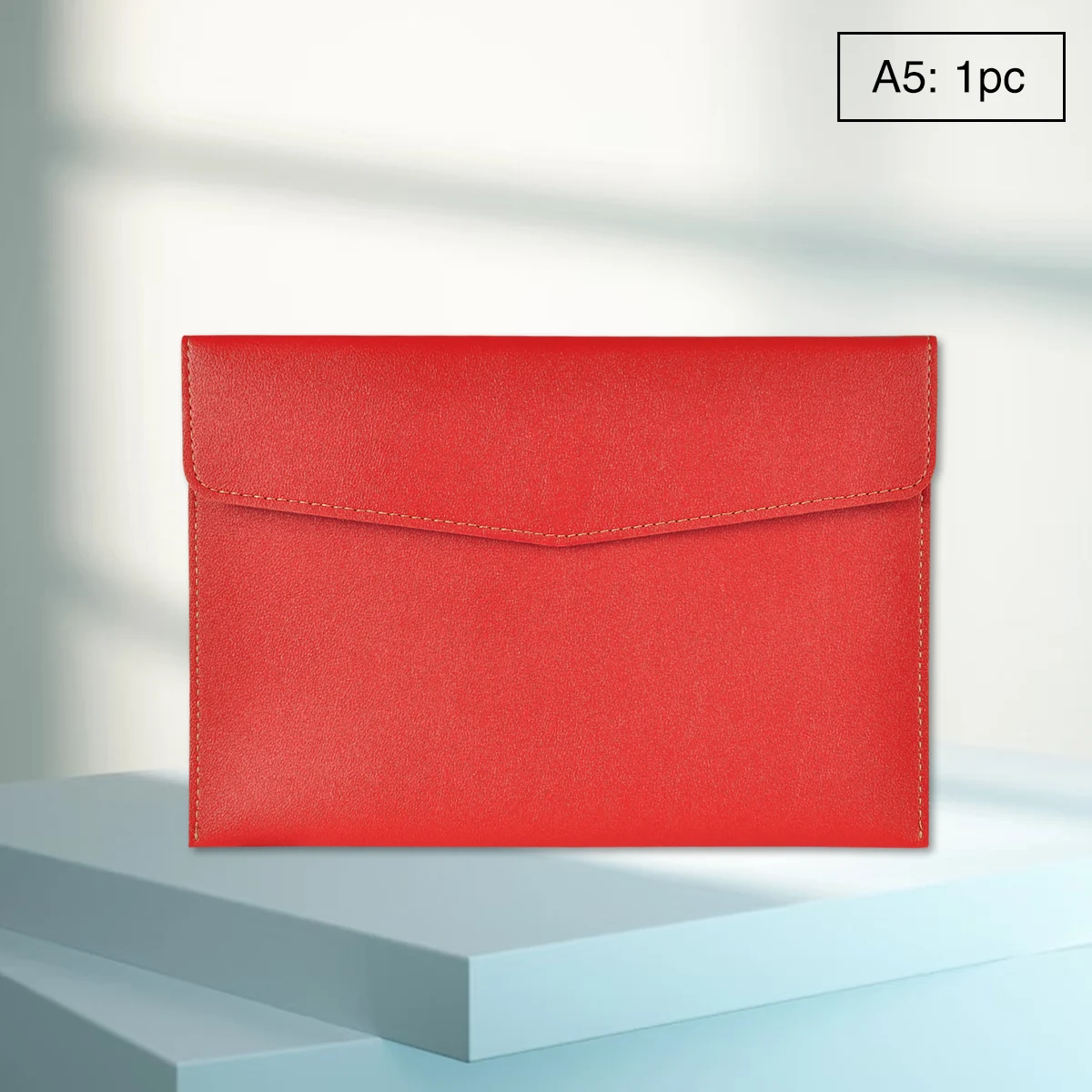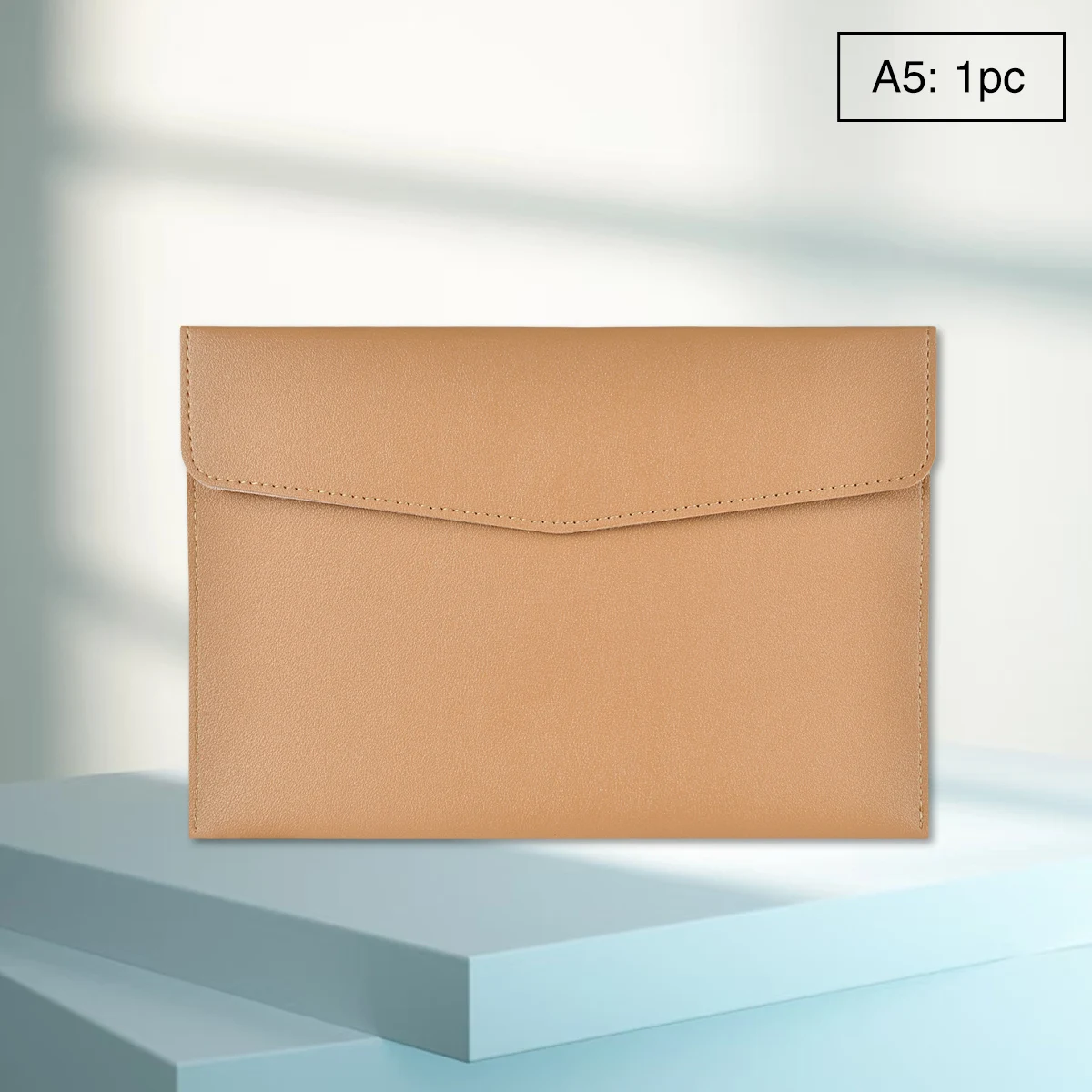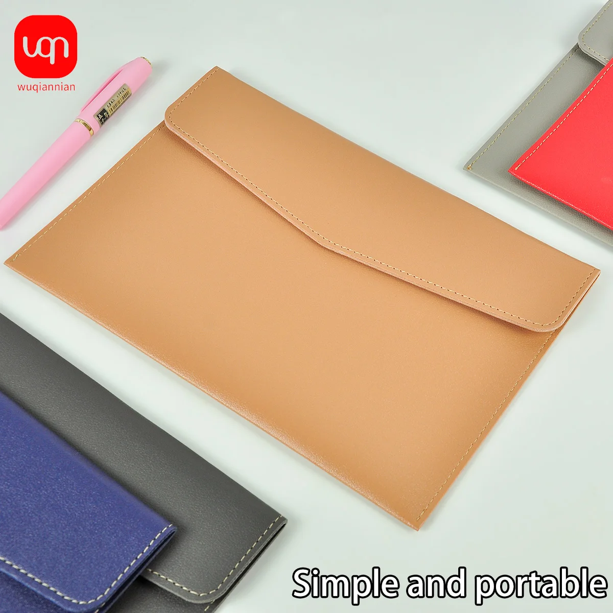 Boîte d'enveloppe de dossier A5 en cuir PU WQN-1PC avec fermeture à pression, fournitures de papeterie scolaires et de bureau