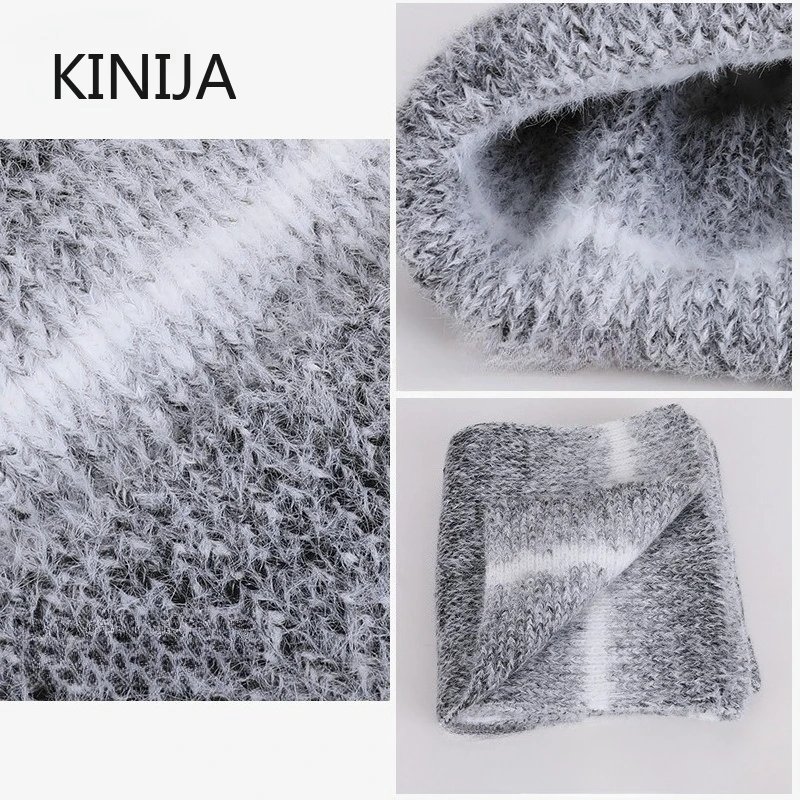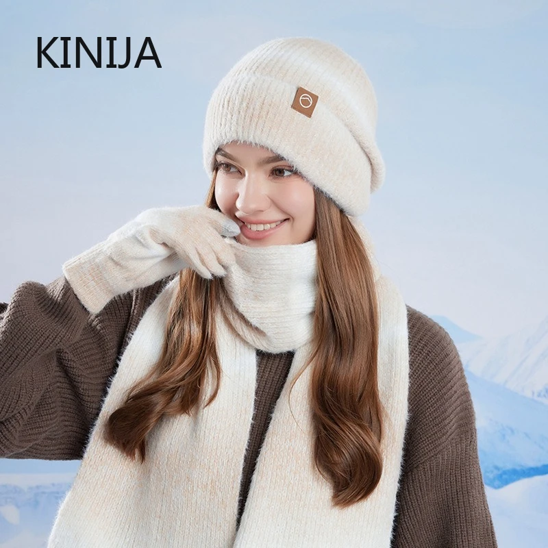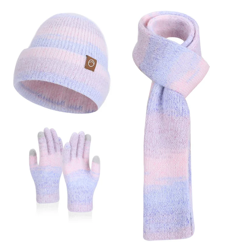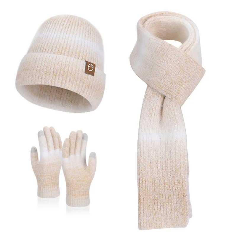 Bonnet d'hiver gants écharpe ensemble femmes dégradé couleur tricoté chapeau épaissi polaire doublure Skullcap plein air cyclisme coupe-vent bonnets