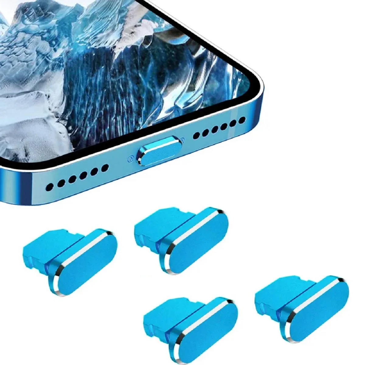 Bouchon Anti-poussière en alliage d'aluminium, 4 pièces, pour IPhone 14 13 12 Pro Max 11 Mini XS 8 Plus IPad AirPods Apple Series, couvercle de Port Lightning