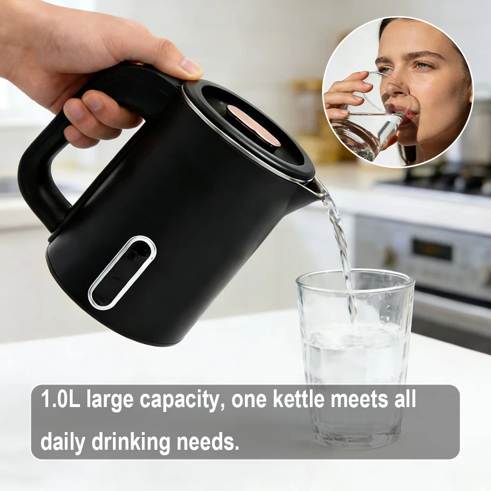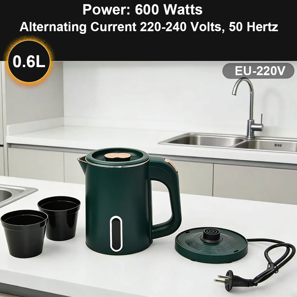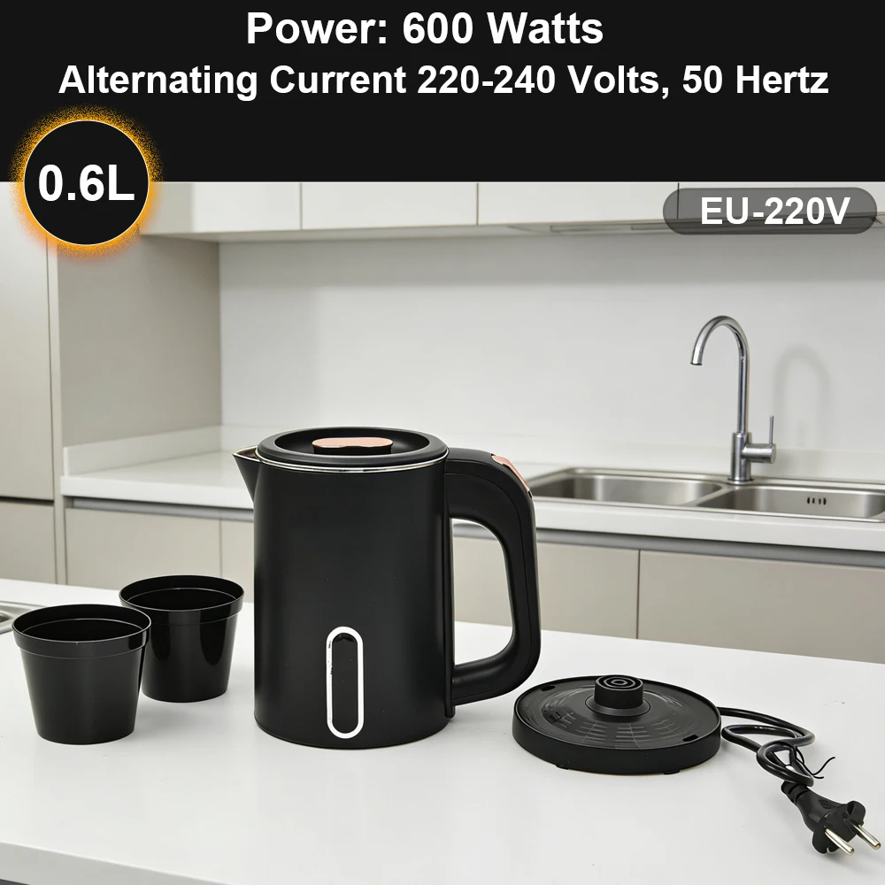 Bouilloire électrique de voyage et de ménage en acier inoxydable 0,6 L, adaptée aux voyages, à la maison, aux voyages d'affaires et à l'hôtel, thé électrique