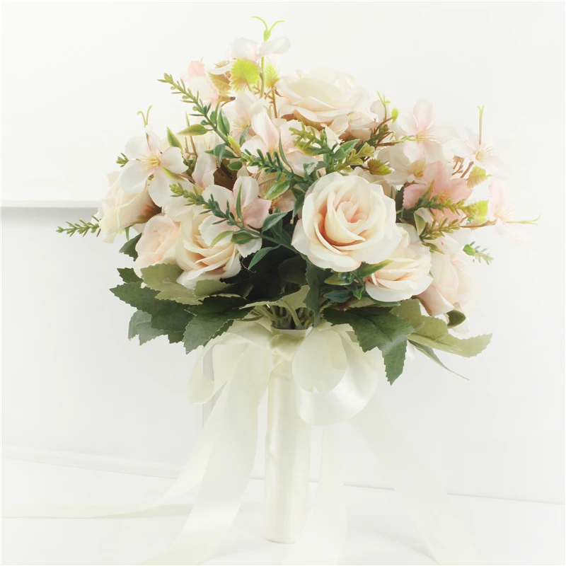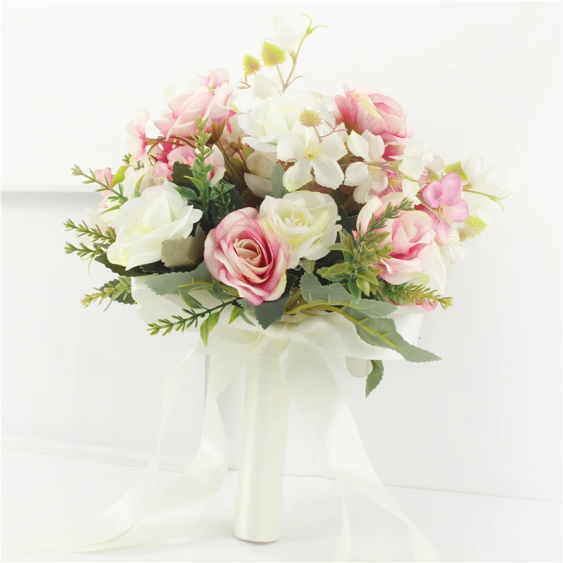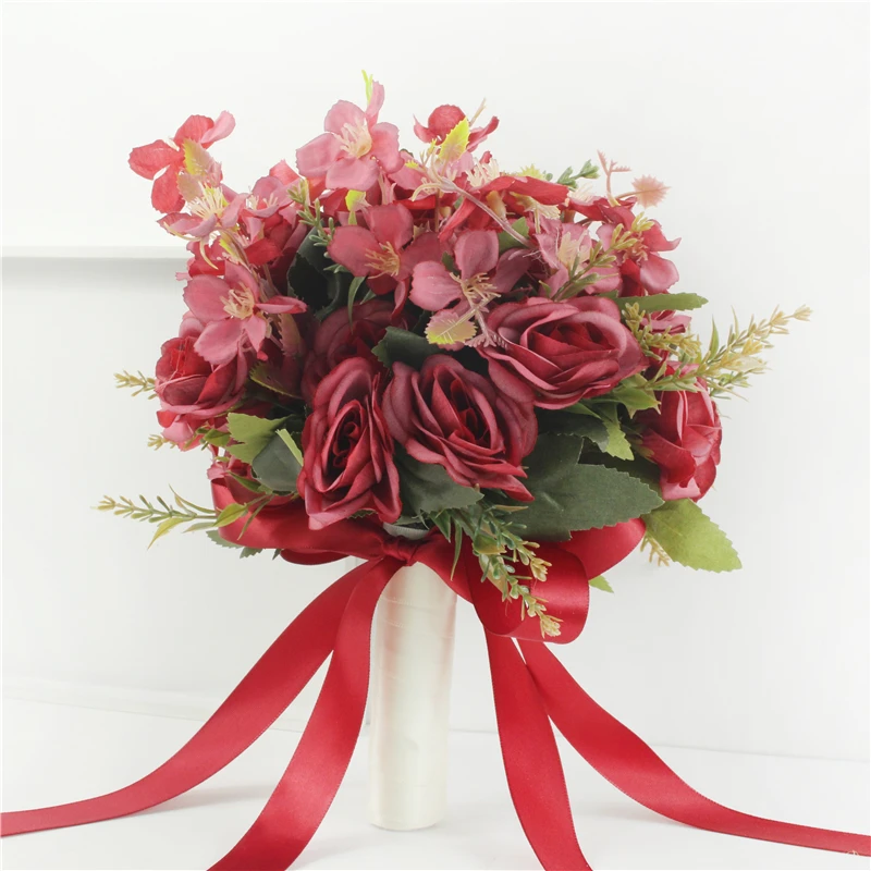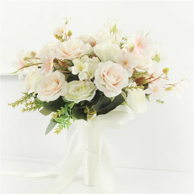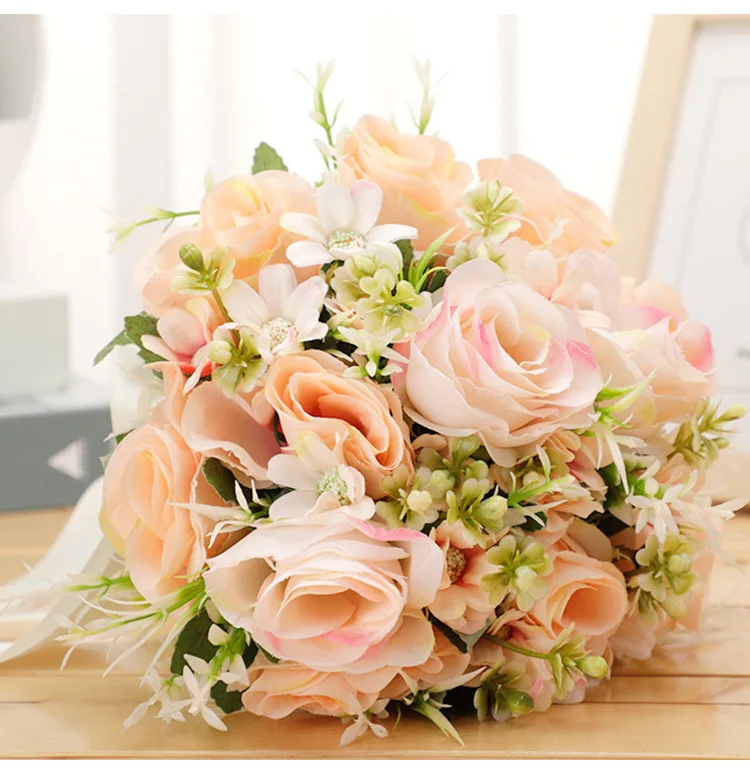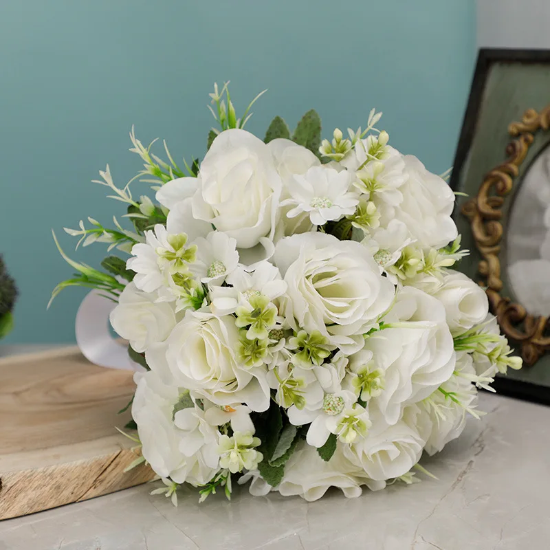 Emballage inclus: 1 bouquet de mariage de fleurs de roses artificielles (vase non inclus)