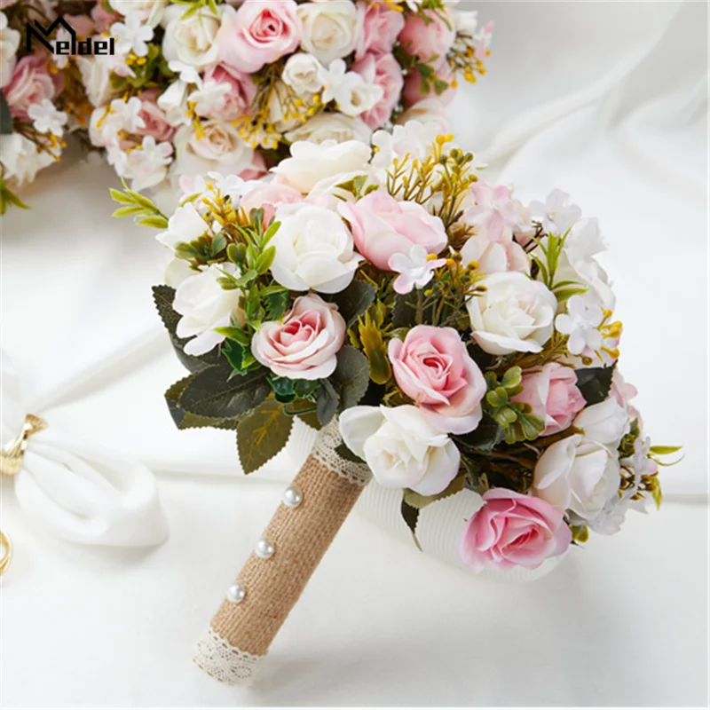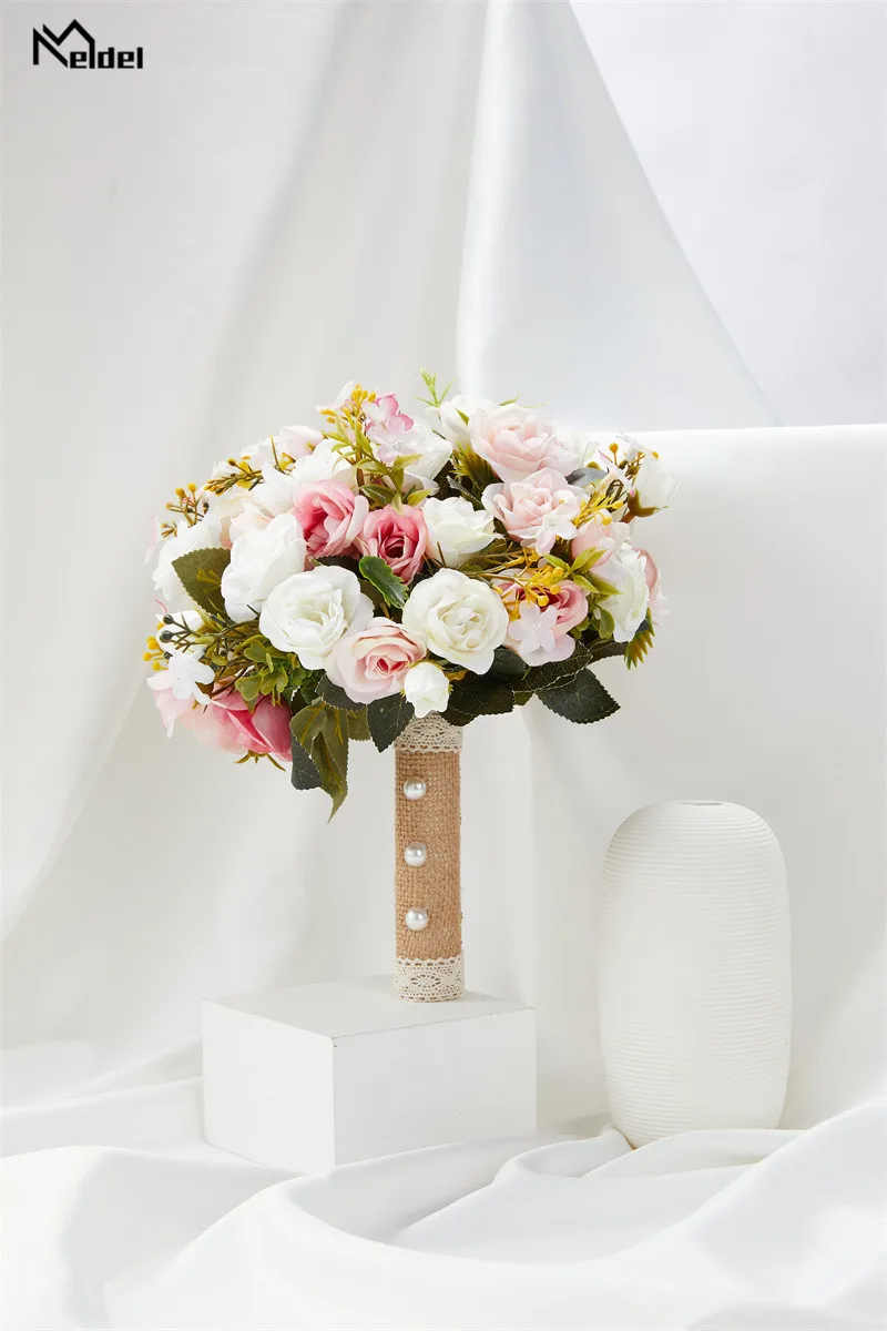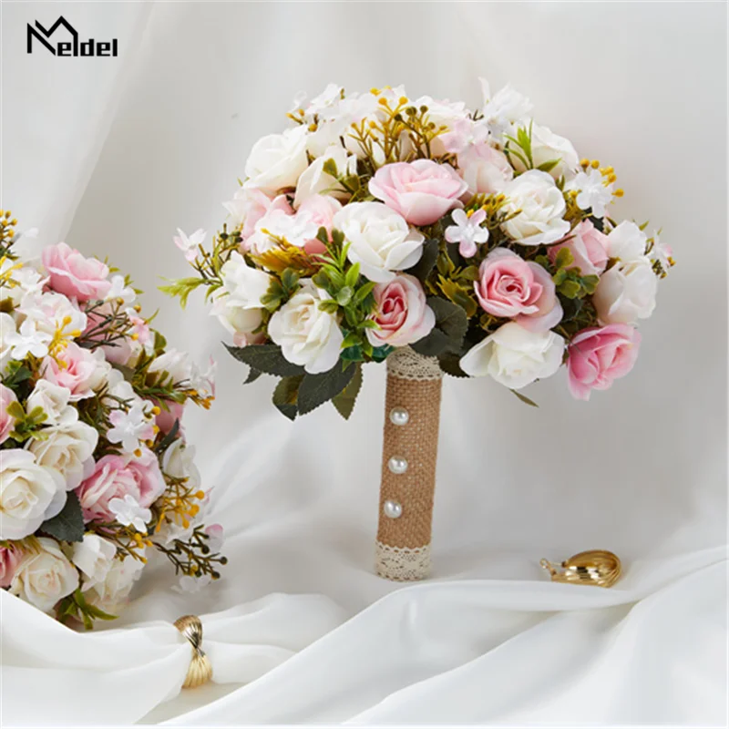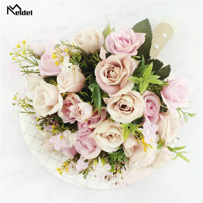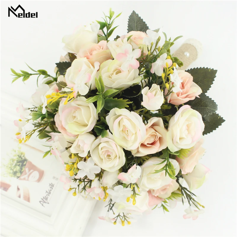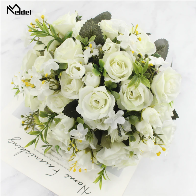 Emballage inclus: 1 bouquet de mariage de fleurs de roses artificielles (vase non inclus)