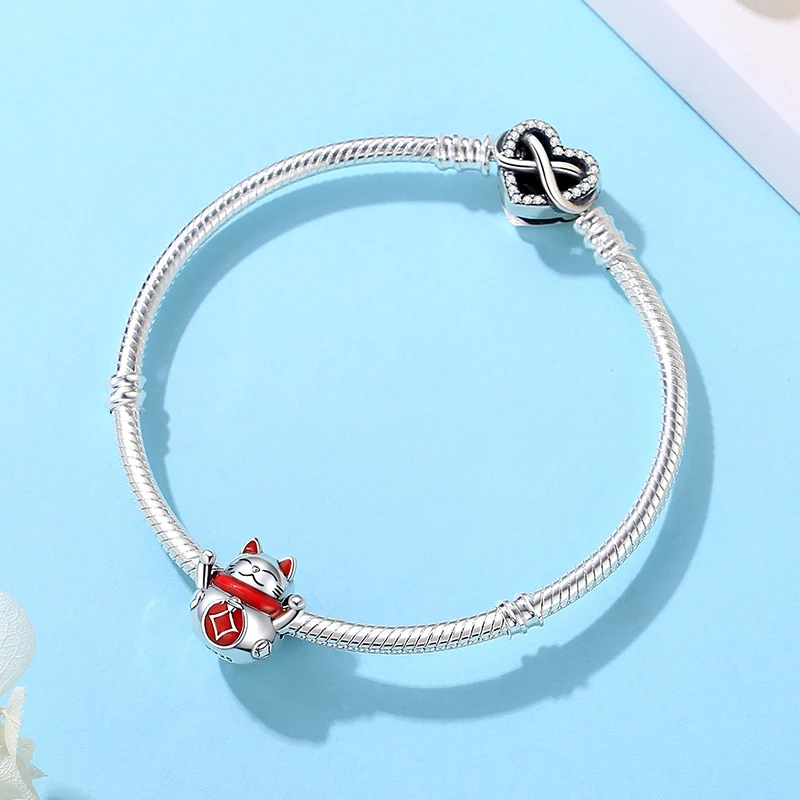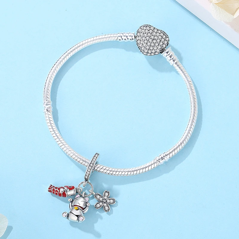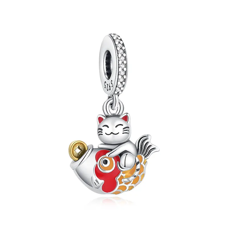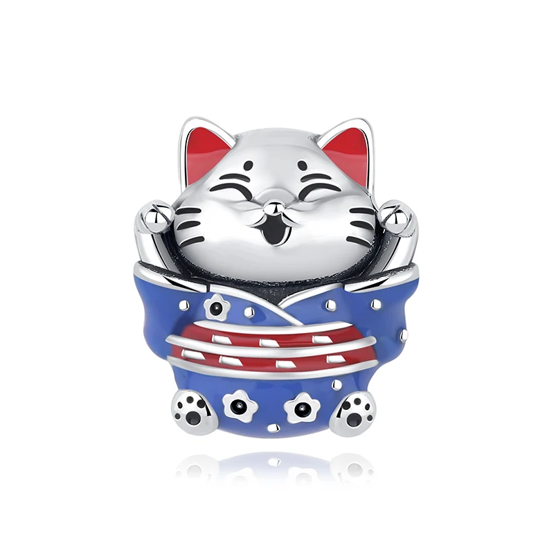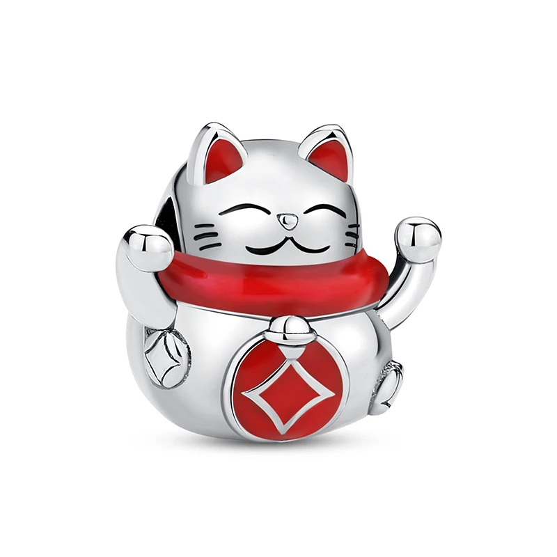 Breloques en argent Sterling 925, chat de Fortune, pendentif du nouvel an chinois, perles pour fille japonaise, adaptées aux Bracelets de marque, colliers, bijoux pour femmes