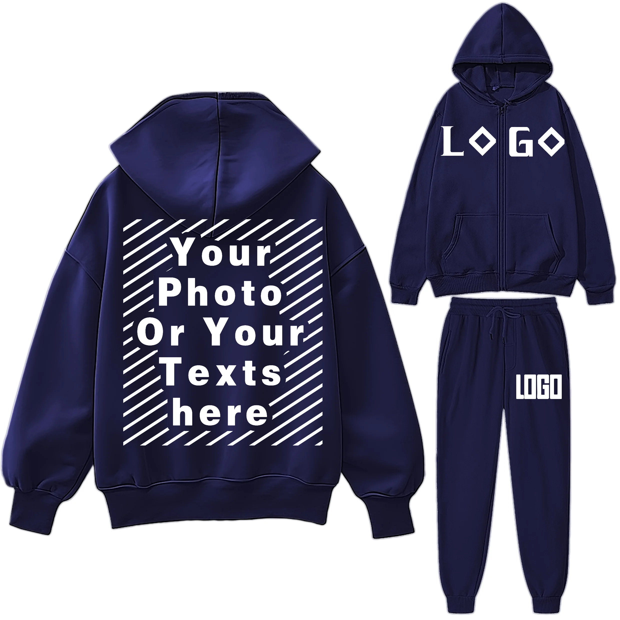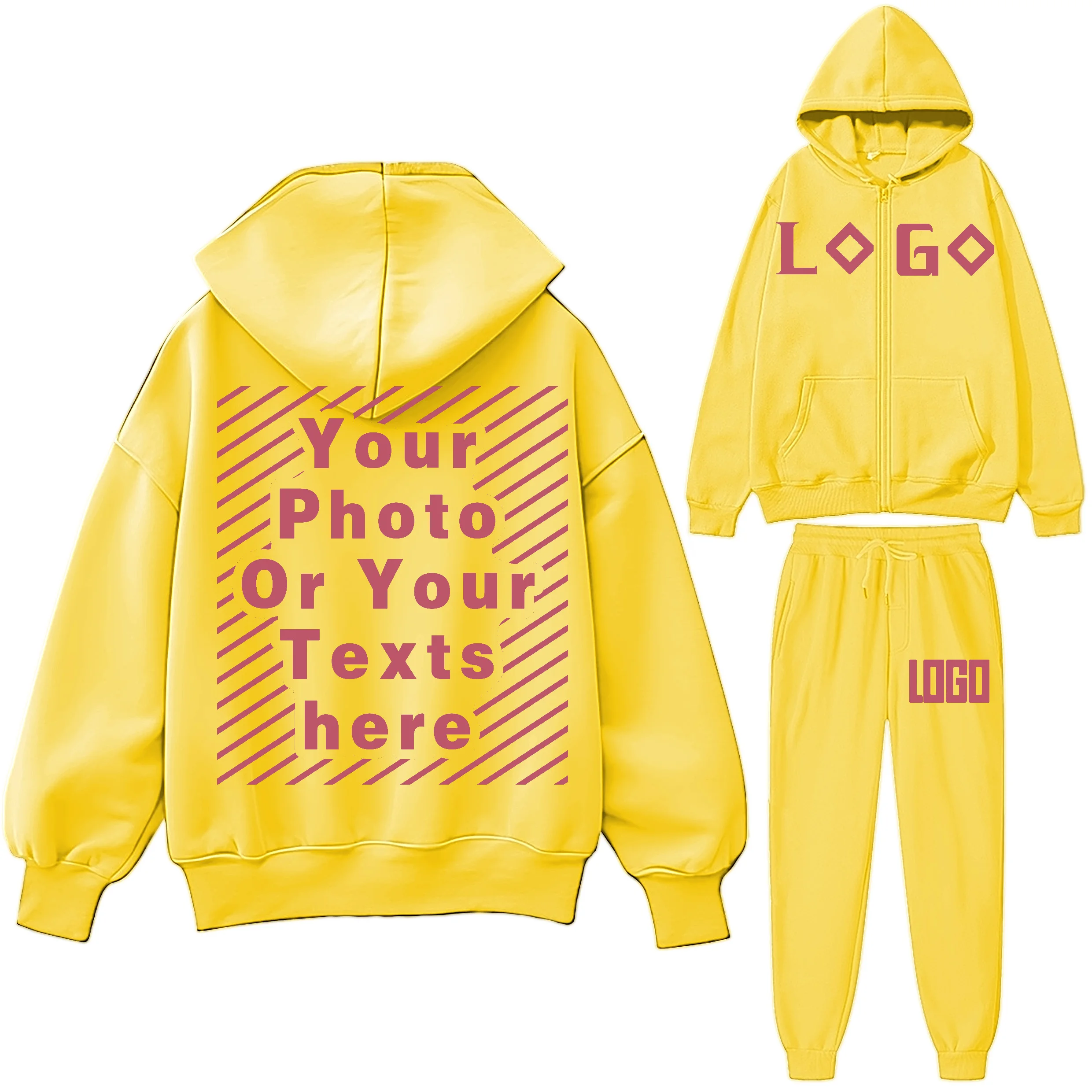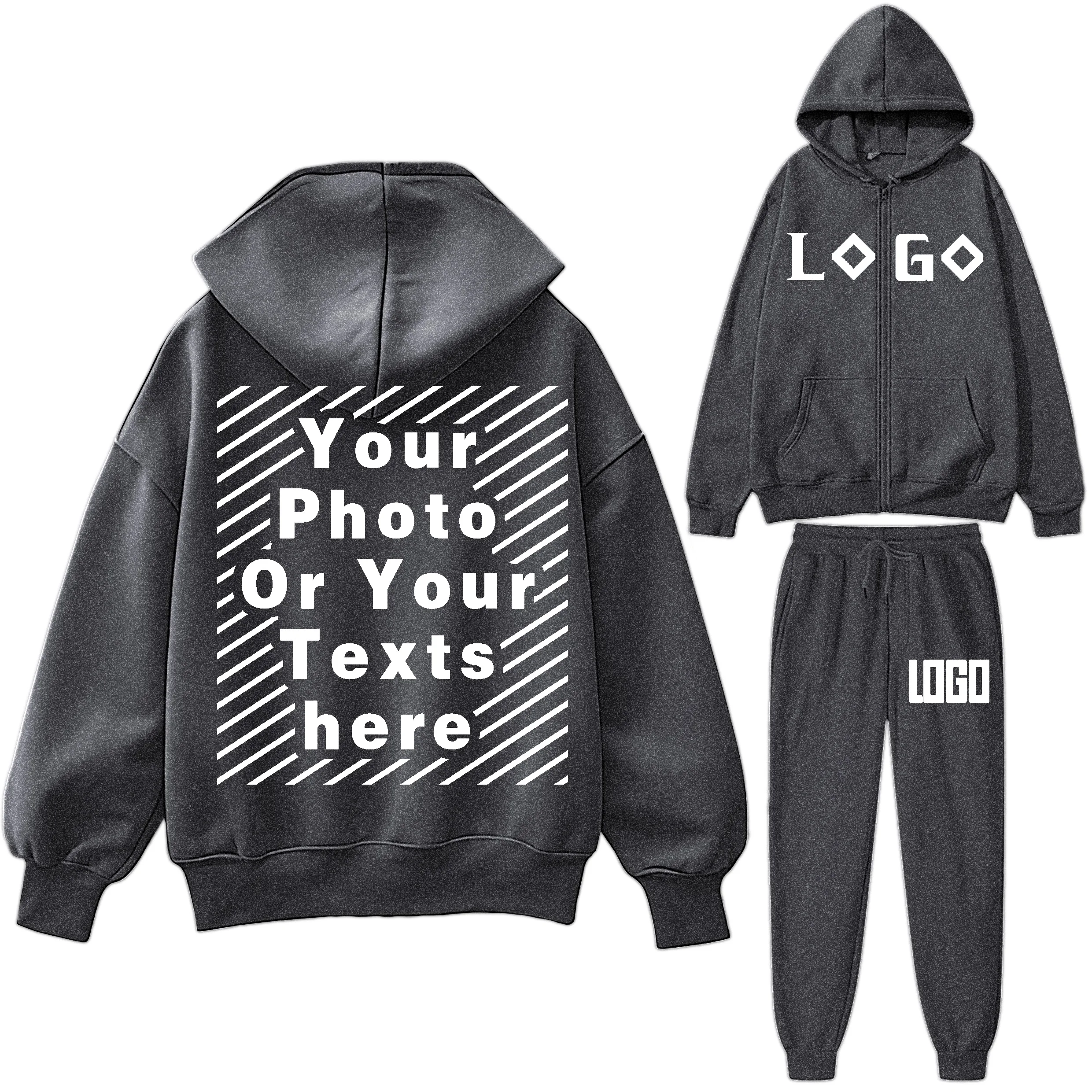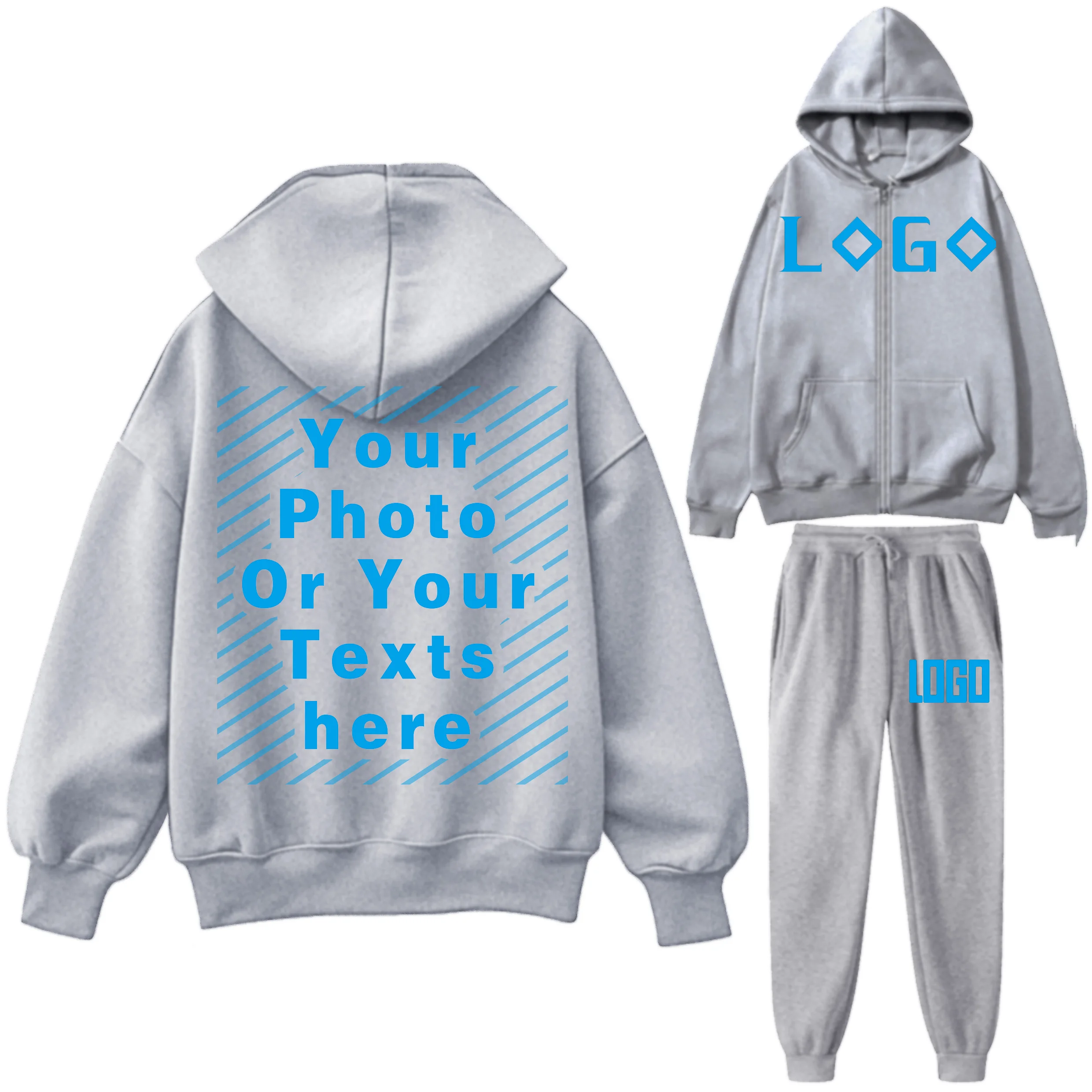 Bricolage personnaliser votre LOGO survêtement automne mode sweat à capuche chaud sweats deux pièces surdimensionné solide pulls à capuche décontractés