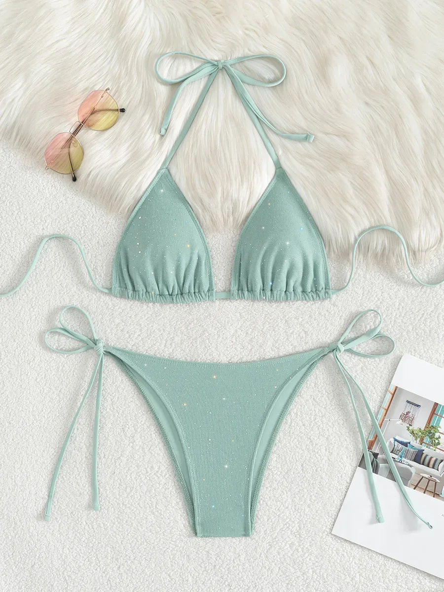 Brillant scintillant licou à bretelles Bikini 2025 coupe haute Bikinis femme maillot de bain femmes maillots de bain deux pièces Bikini ensemble maillot de bain