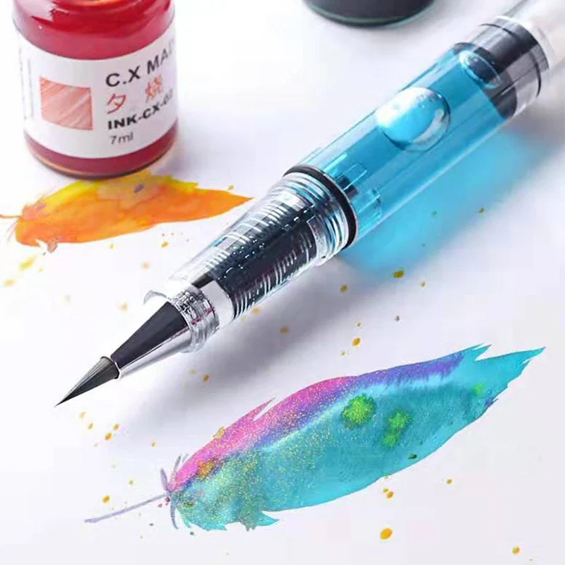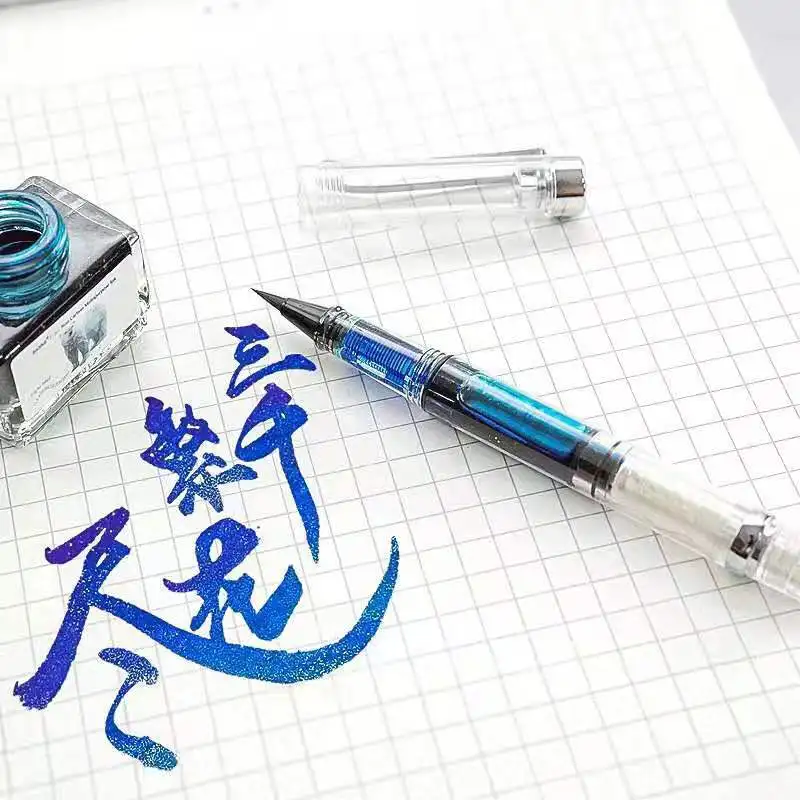 Brosse Calligraphique transparente Portable, cheveux de belette, pointe souple, stylo pinceau aquarelle, stylo à encre rechargeable, stylo de dessin artistique