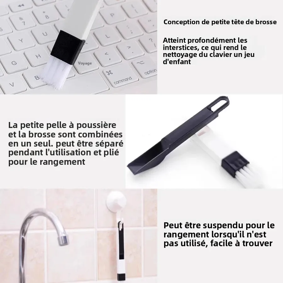 Brosse de nettoyage Portable deux en un, nettoyeur multifonctionnel de rainures de clavier de porte et de fenêtre, pelle à poussière, outil de nettoyage de Rail de fenêtre