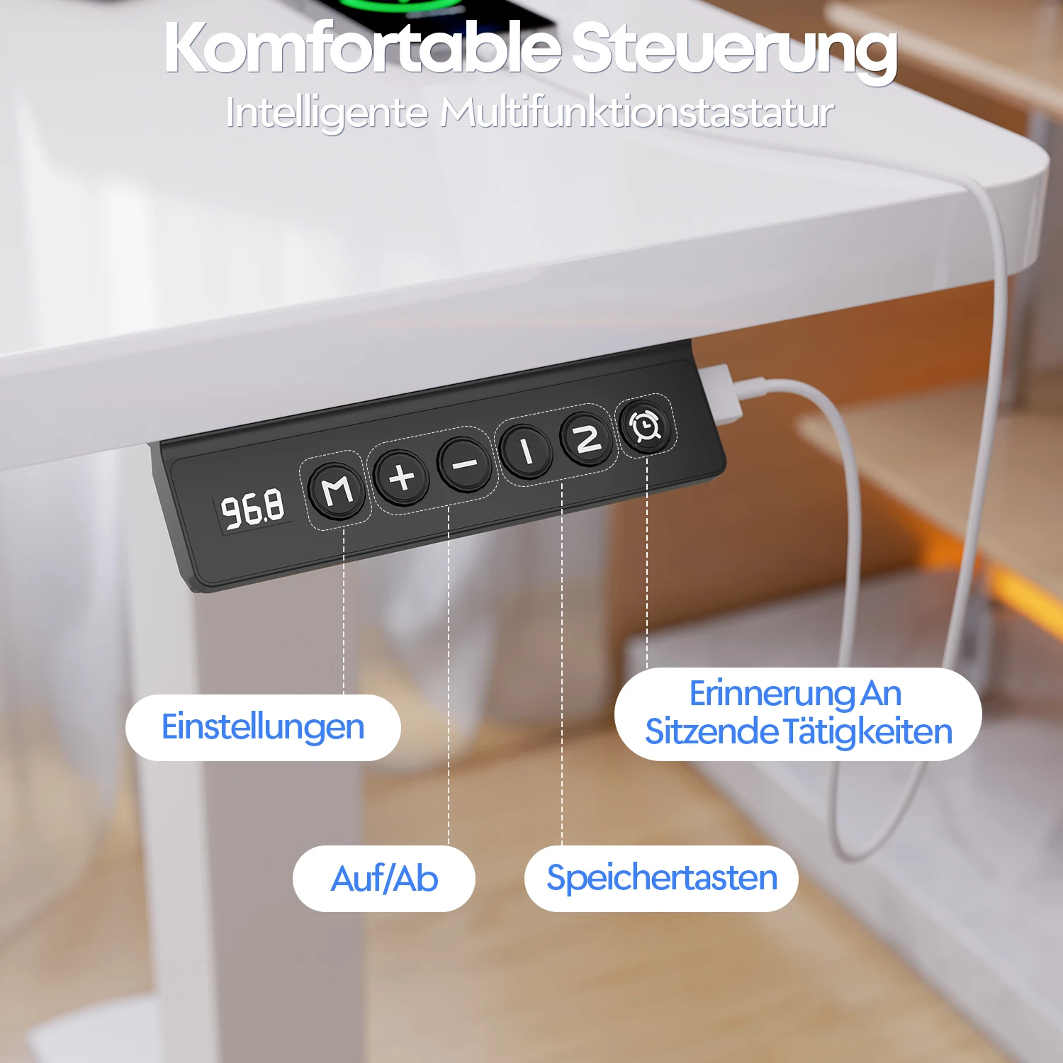Bureau électrique réglable en hauteur Devoko 180x80cm avec tiroirs Port de chargement USB-A