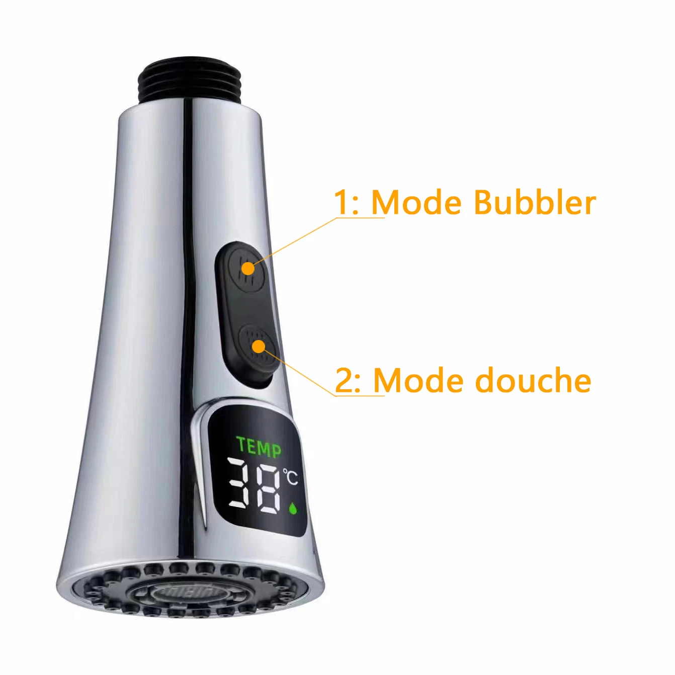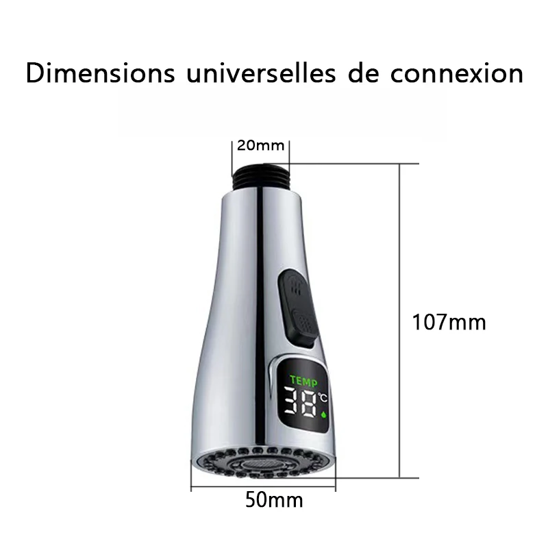 Buse de robinet d'eau d'évier de nervure de cuisine, affichage numérique LED universel, robinets adaptateur, connecteur de moteur, 2 modes Raccords de rechange pour robinets de filtre à eau anti - éclaboussures