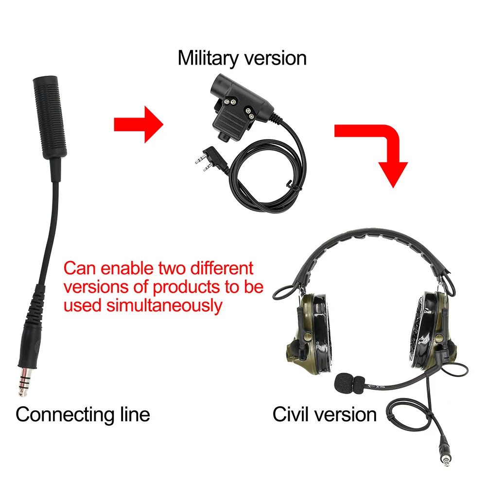 Casques tactiques communs, le PTT est divisé en deux définitions : définition régulée militaire et définition régulée non militaire, les appareils régulés militaires et non militaires ne peuvent pas être connectés normalement