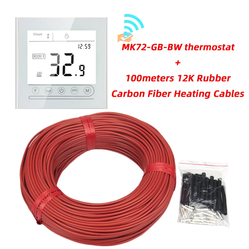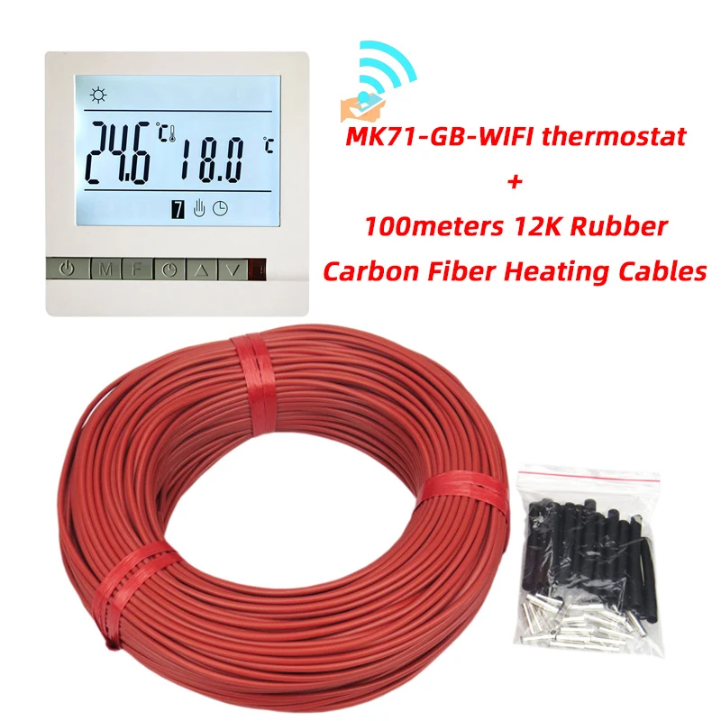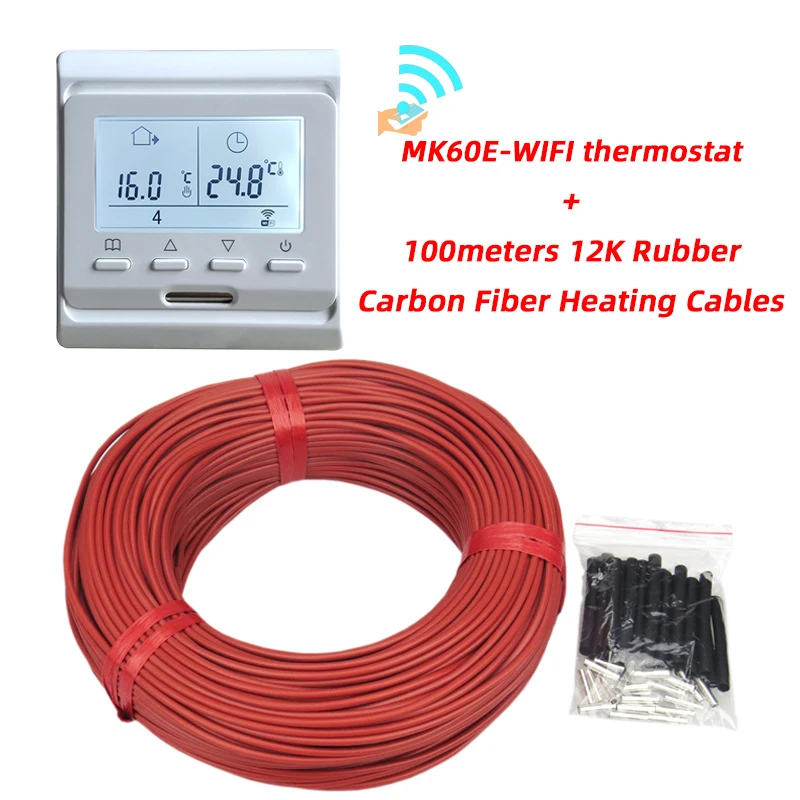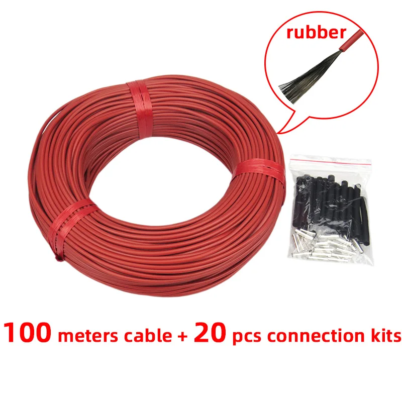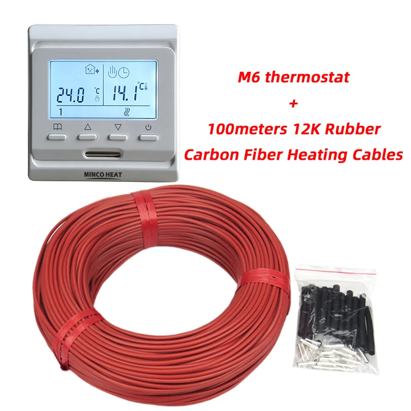 Câble de chauffage électrique au sol, 100m, peut être expédié depuis la russie, 12K avec thermostat, en caoutchouc Silicone, infrarouge, en Fiber de carbone