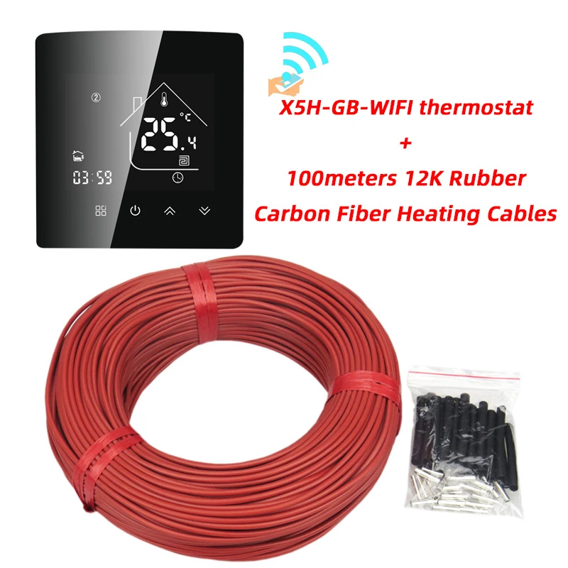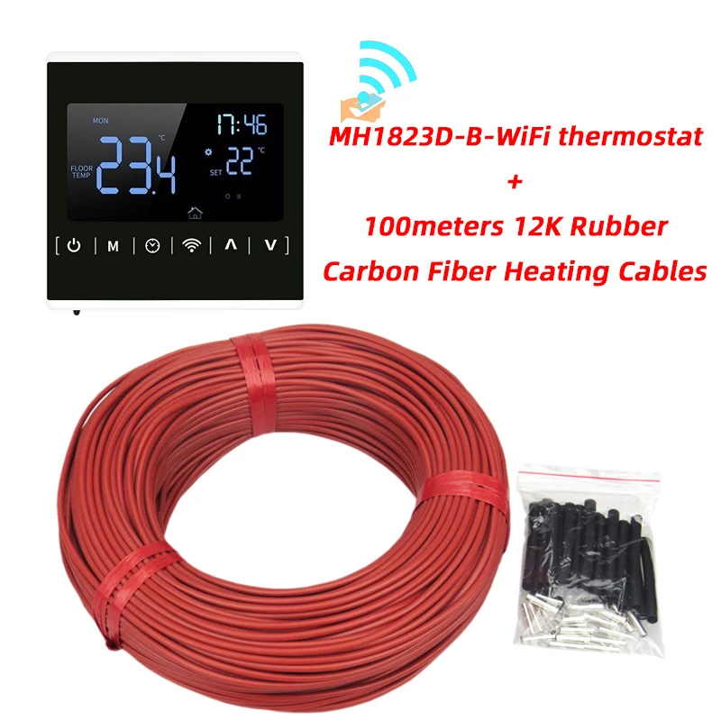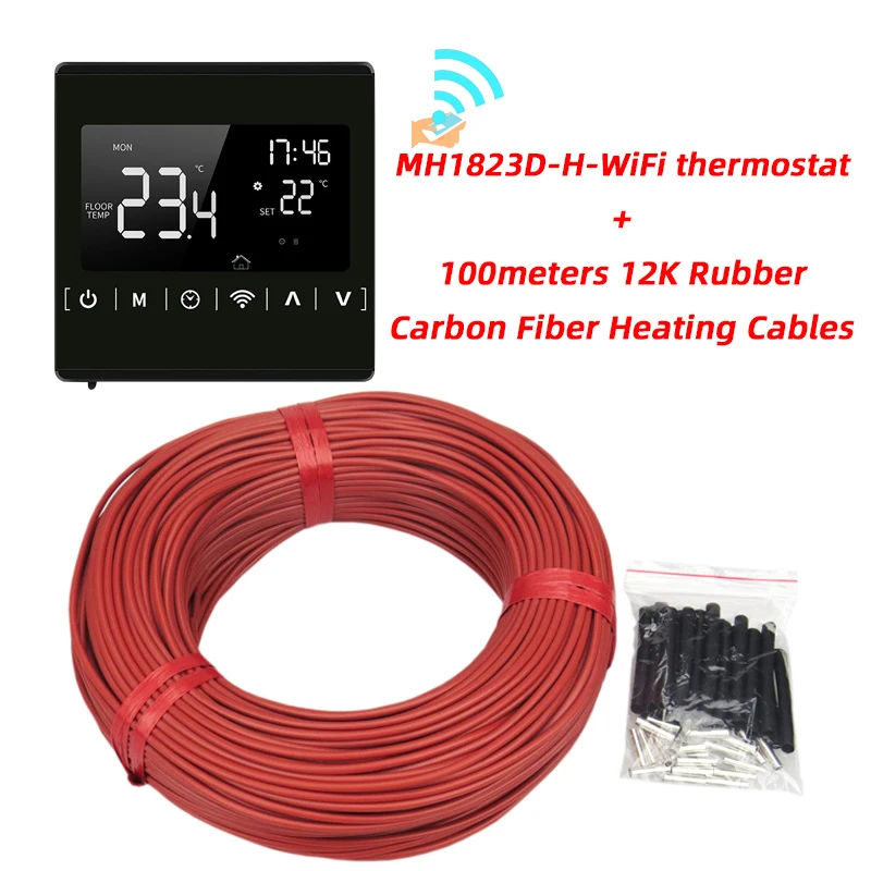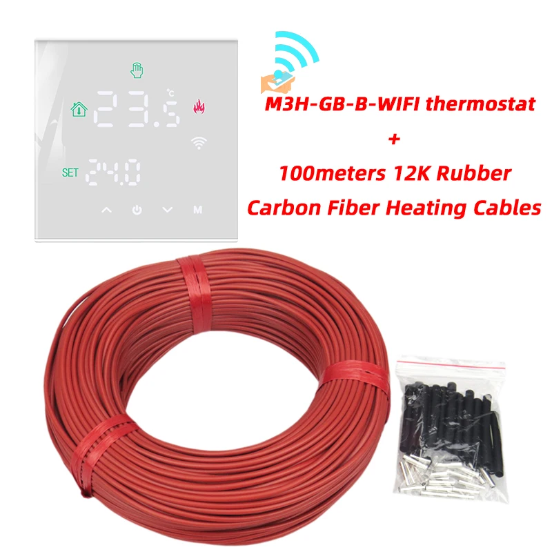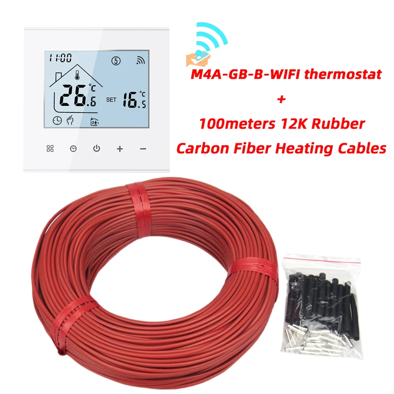 Câble de chauffage électrique au sol, 100m, peut être expédié depuis la russie, 12K avec thermostat, en caoutchouc Silicone, infrarouge, en Fiber de carbone