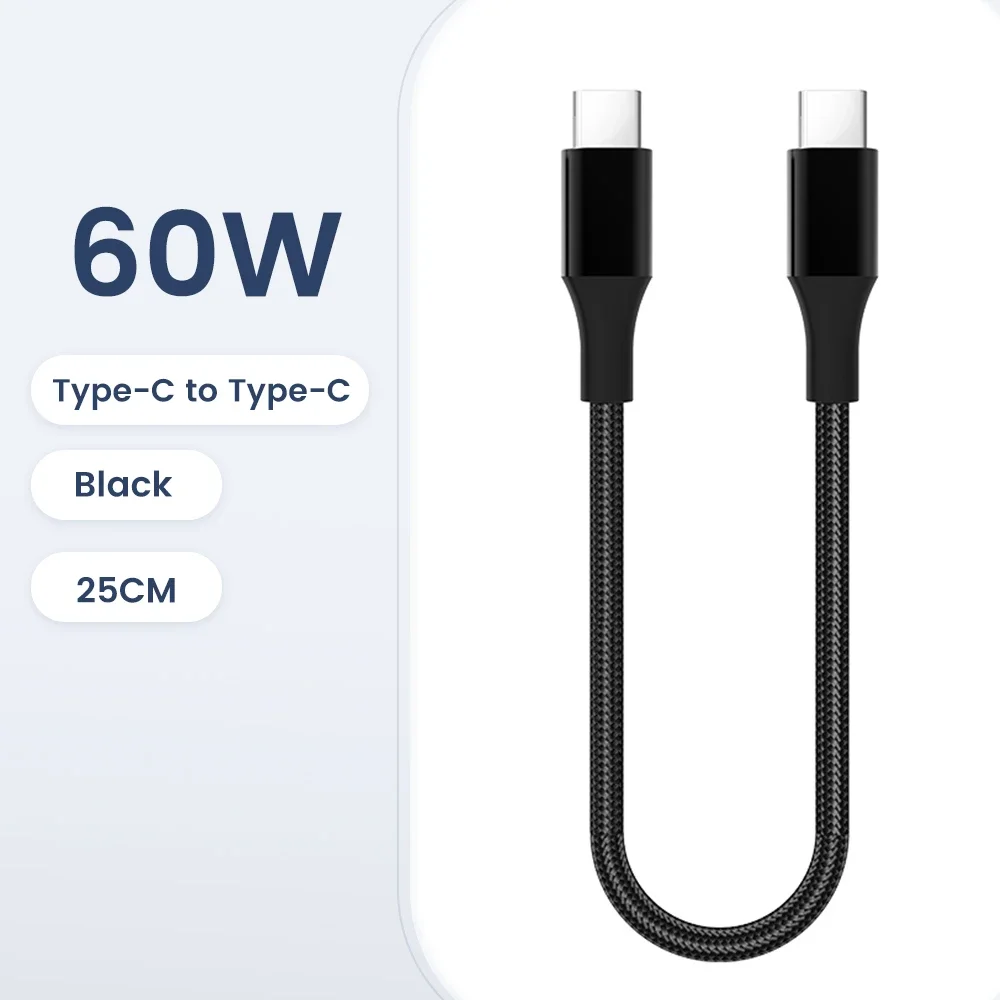 Câble court de Type C vers USB C de 30cm, charge rapide pour Iphone15, Xiaomi, Samsung, Huawei Power BanK, câble de données USB vers Type C/USB C de 25cm