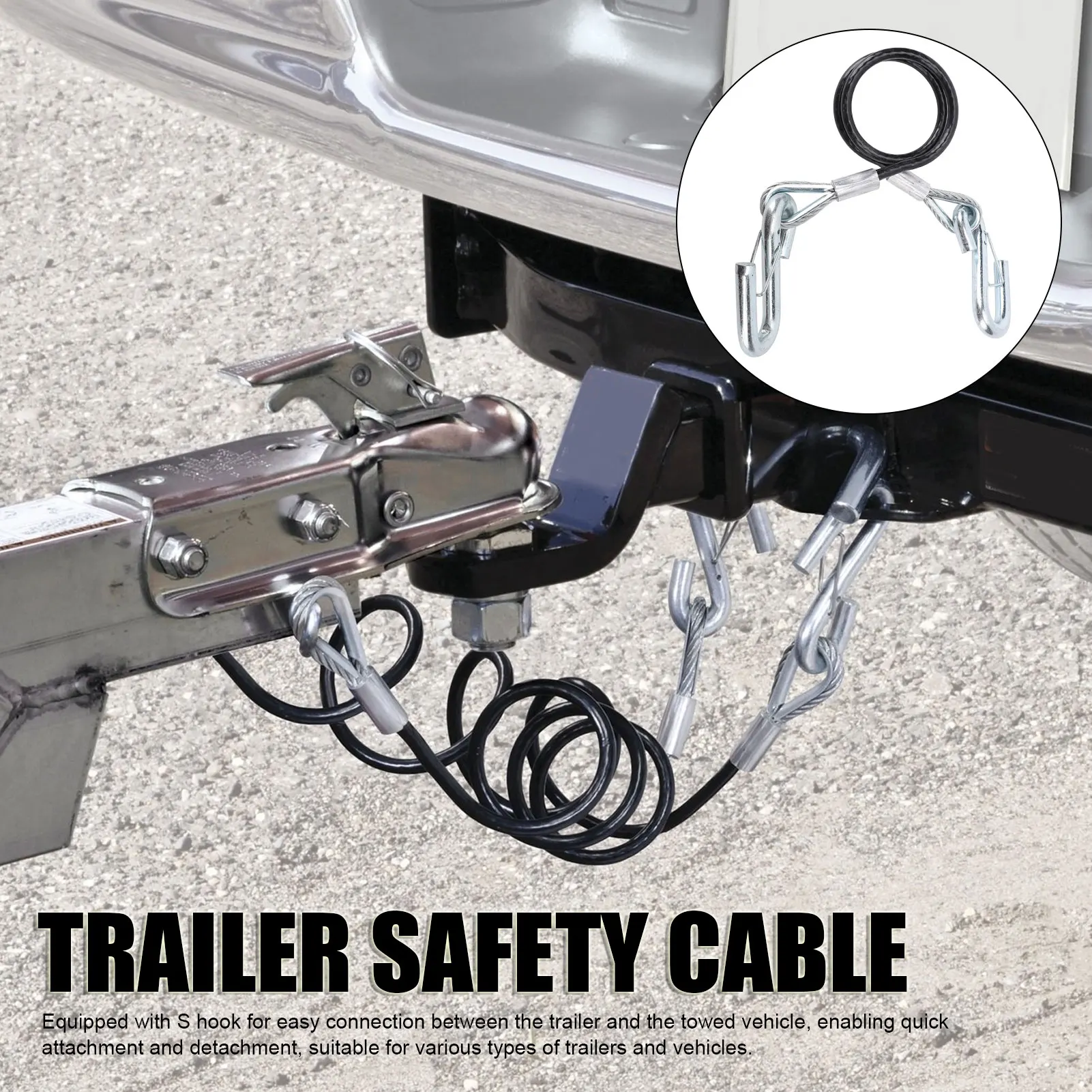 1.Matériau haute résistance : fabriqué à partir de fil haute résistance, le câble de sécurité pour remorque offre une excellente résistance à la traction et anti-abrasion, capable de supporter des charges allant jusqu'à 3 500 lb, assurant la sécurité pendant le remorquage.