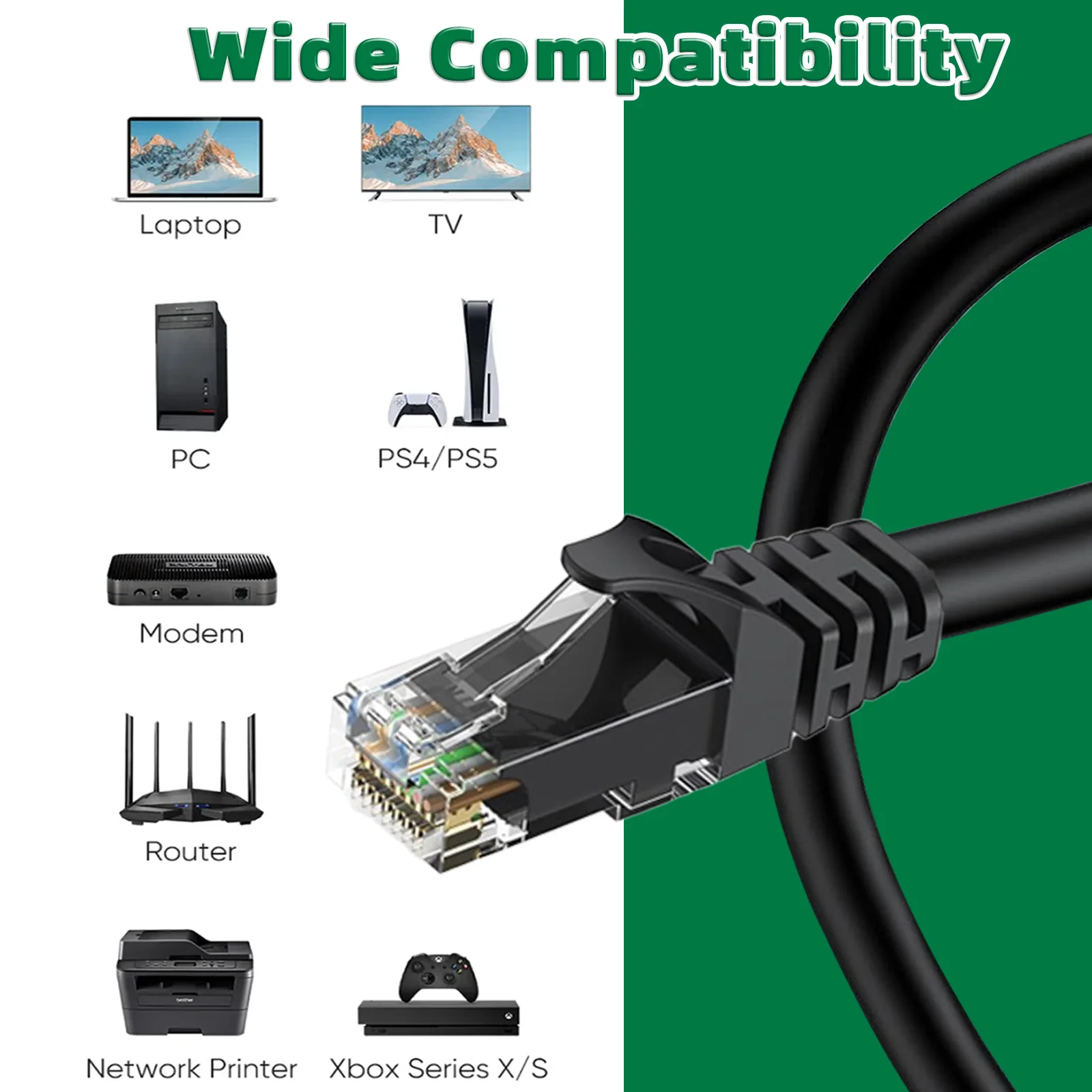Équipé de connecteurs RJ45 durables, ce câble offre une connectivité universelle pour une large gamme d'appareils, notamment des PC, des ordinateurs portables, des routeurs, des téléviseurs intelligents et des consoles de jeux comme PS5, PS4 et Xbox.