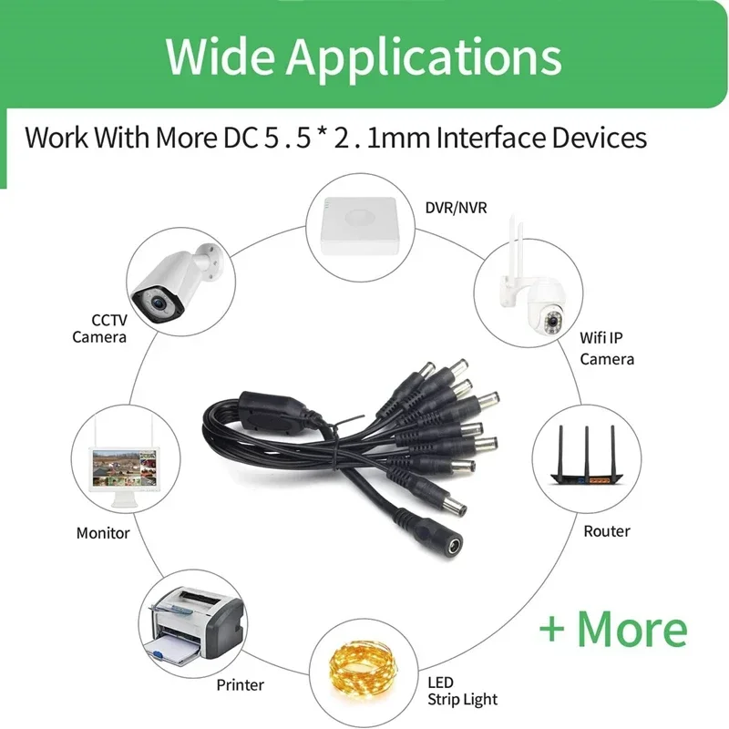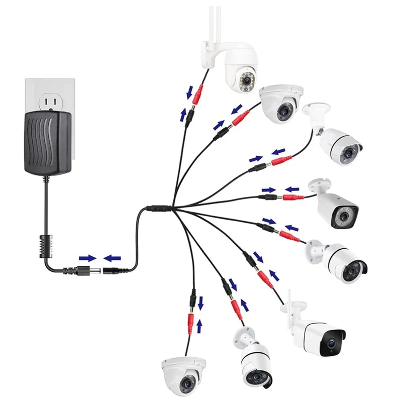 Câble séparateur d'alimentation 5.5x2.1mm 1 à 2/8 voies 5V 12V DC, adaptateur d'alimentation, cordon de connecteur pour caméra de sécurité CCTV, bande lumineuse LED