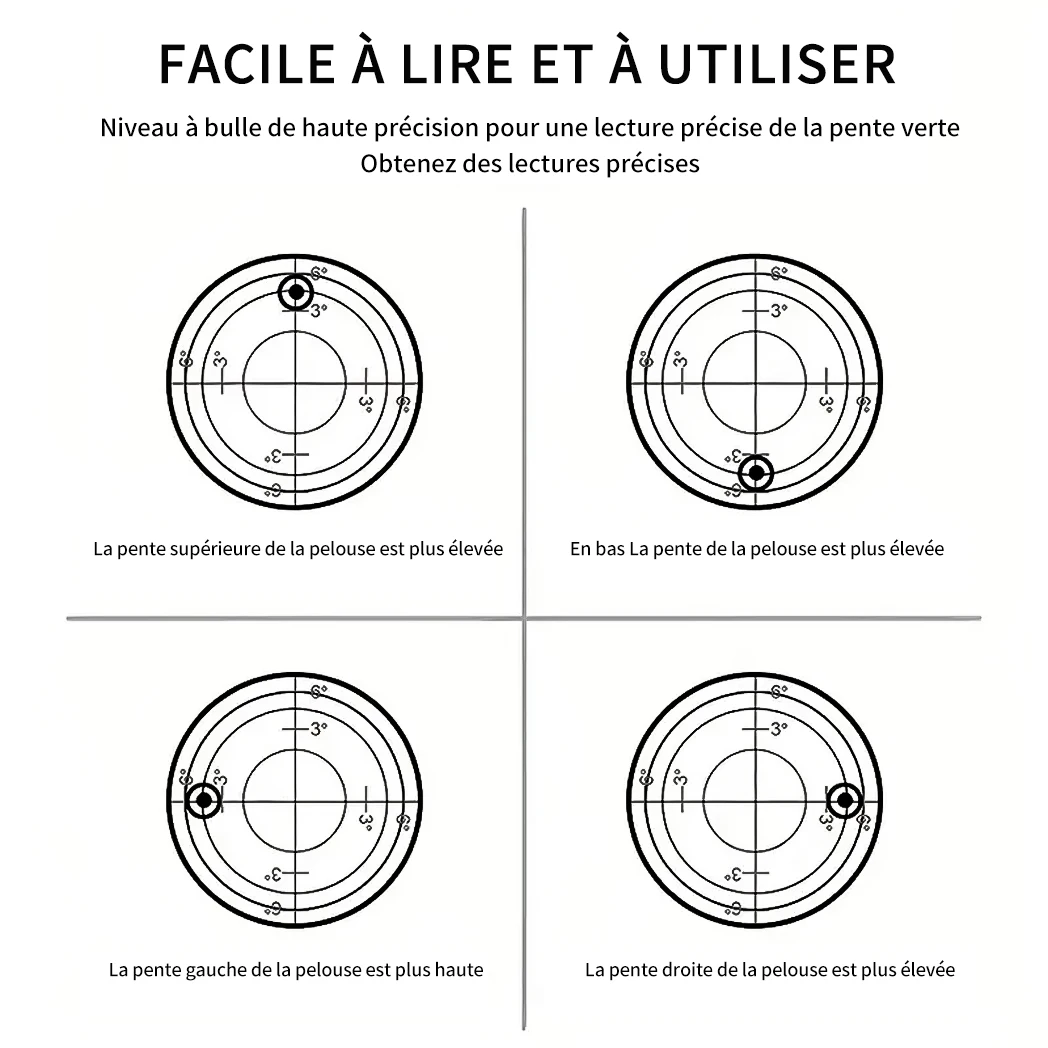 ● Niveau de haute précision pour un alignement précis: le niveau de haute précision intégré aide à réaliser l'alignement parfait, vous aidant à améliorer la précision sur le vert. C'est un outil utile pour affiner vos compétences et gagner un avantage dans votre jeu.