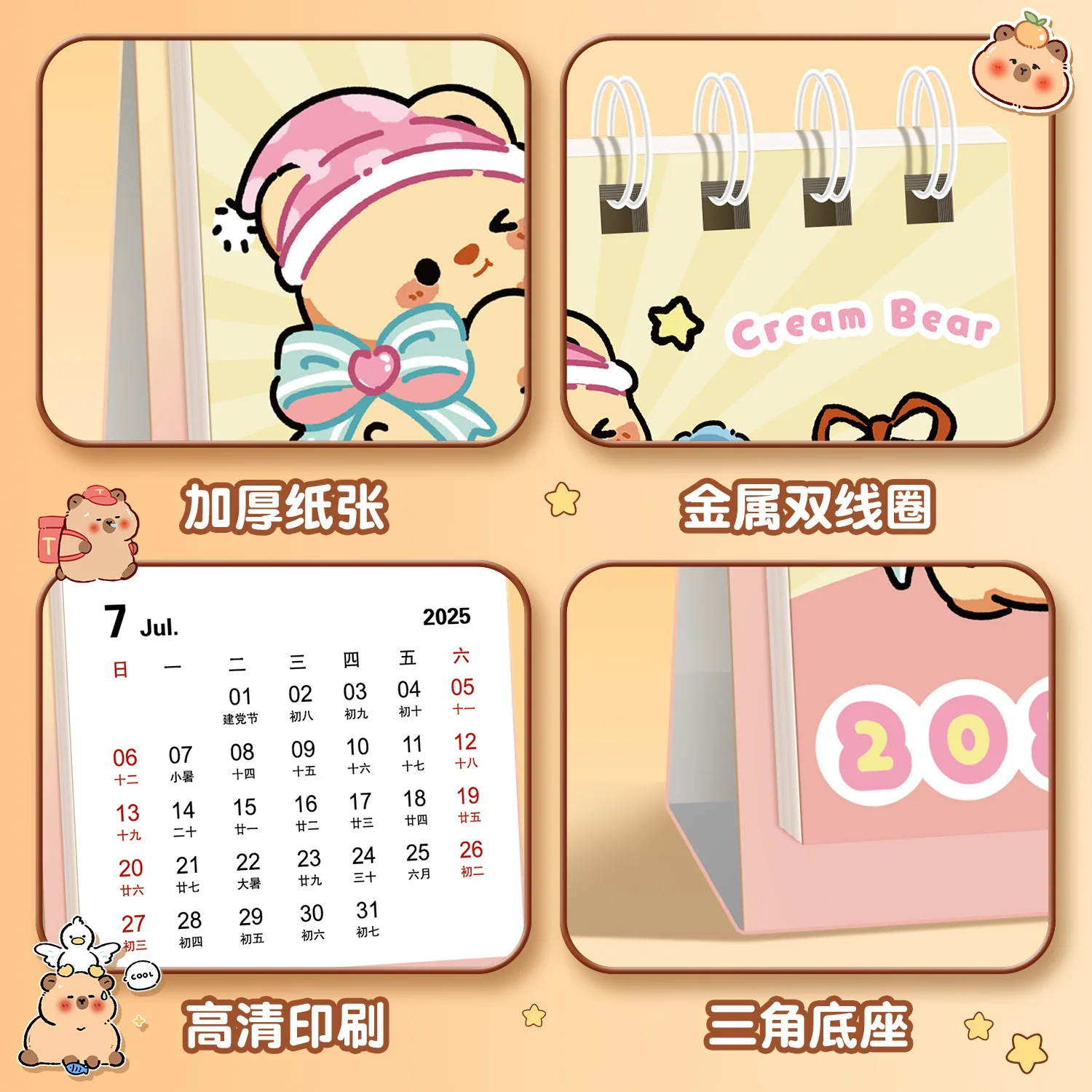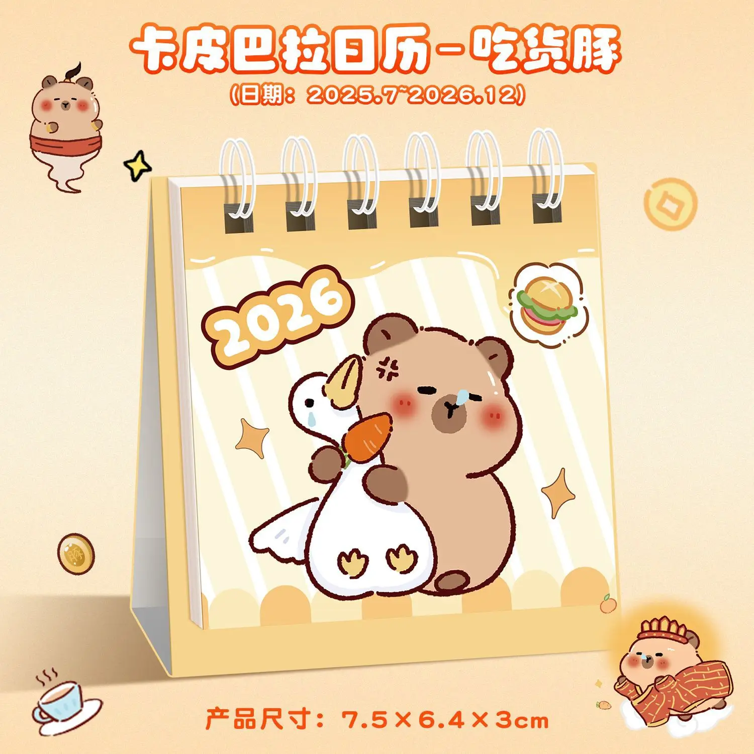 Calendrier 2026 Kapibara, calendrier de bureau de dessin animé, Mini calendrier mignon pour étudiants, calendrier de bureau