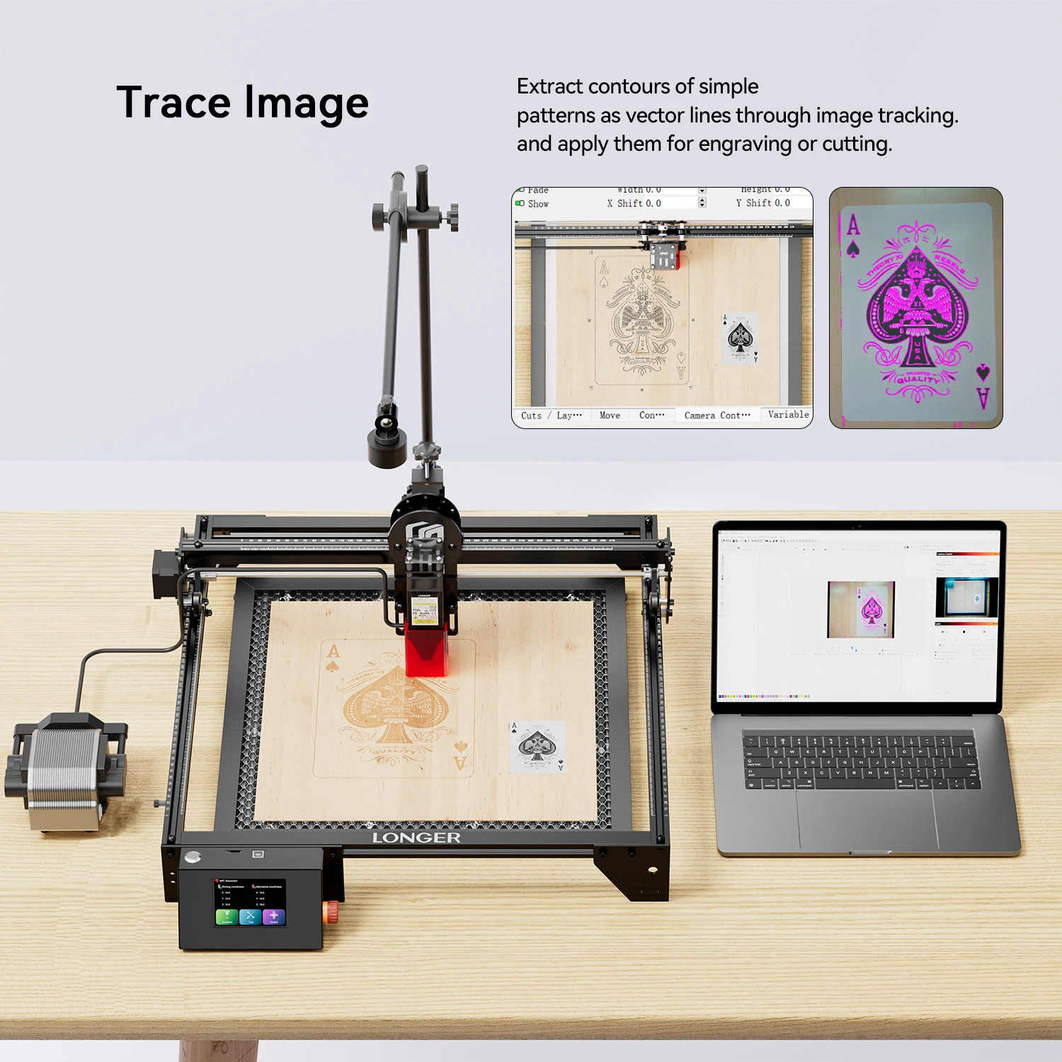 Positionnement automatique et détection précise : Conçue pour la gravure CNC, la fonction de détection automatique de zone de la caméra, combinée au logiciel LightBurn, offre une précision de positionnement inférieure à 1 mm.Grâce à un calibrage simple, la zone de gravure est automatiquement reflétée dans LightBurn, ce qui rend l'opération plus pratique et l'édition plus efficace.