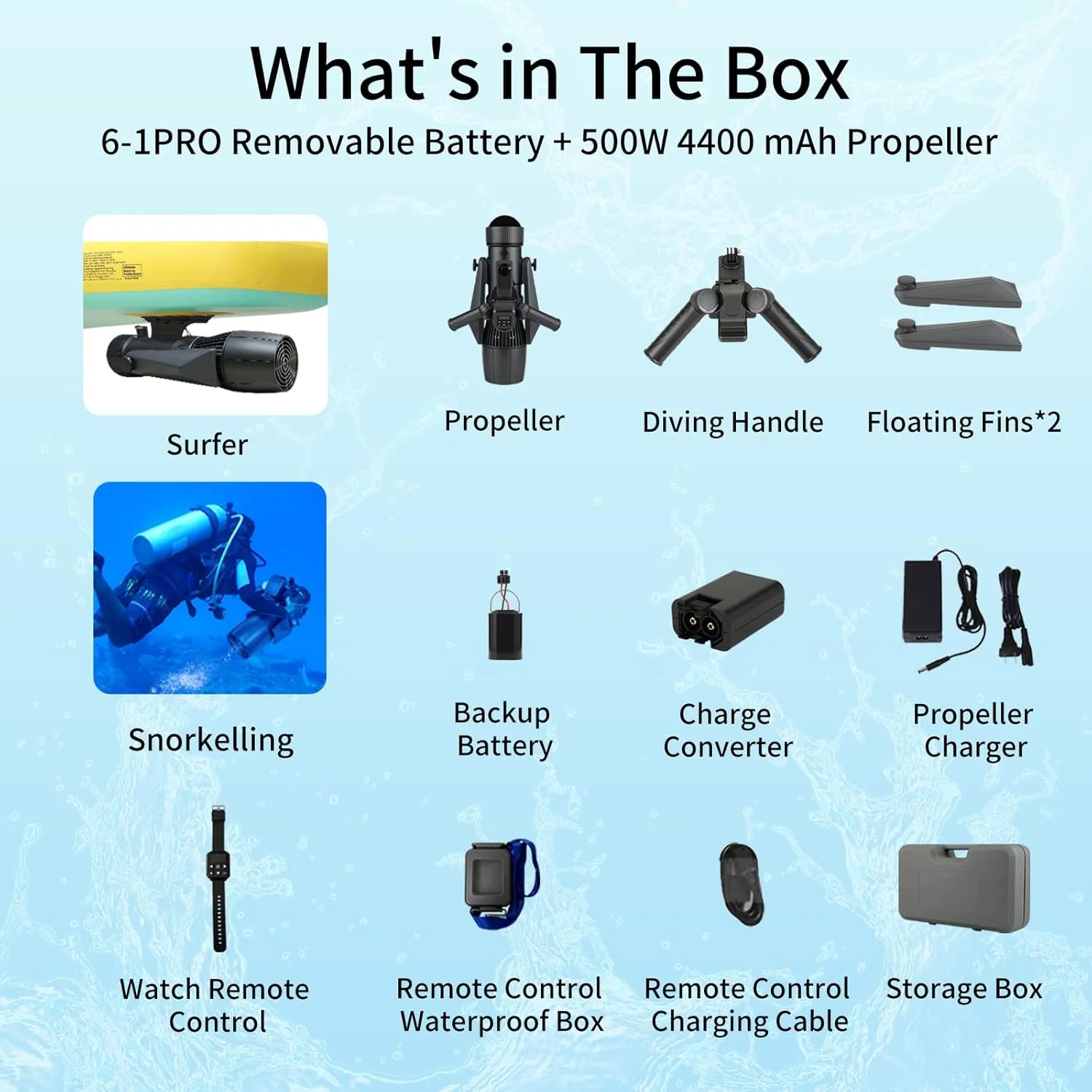 👍Le CM5-1Pro vous apporte plus de plaisir sous-marin, du snorkeling au paddle boarding et même des scooters de piscine. Le CM5-1Pro est si facile à utiliser que les enfants peuvent également se joindre au plaisir.La conception de style montre facilite sa manœuvre, tandis que vous pouvez également utiliser la télécommande en la montrant dans le compartiment étanche de la poignée portable.Deux modes de fonctionnement augmentent ses options de manœuvres dans différents environnements. Avec le support sur la poignée, vous pouvez installer une caméra sous-marine.