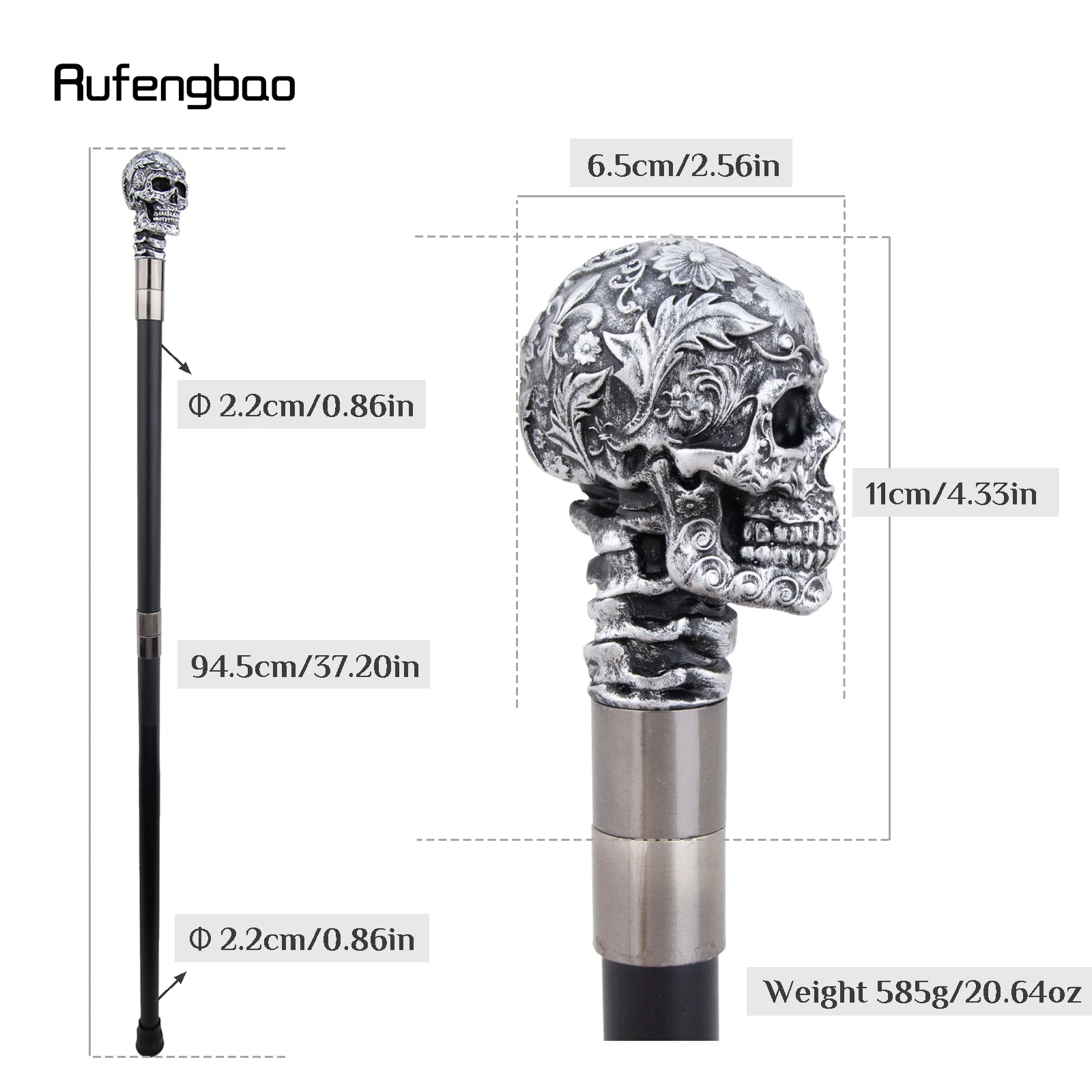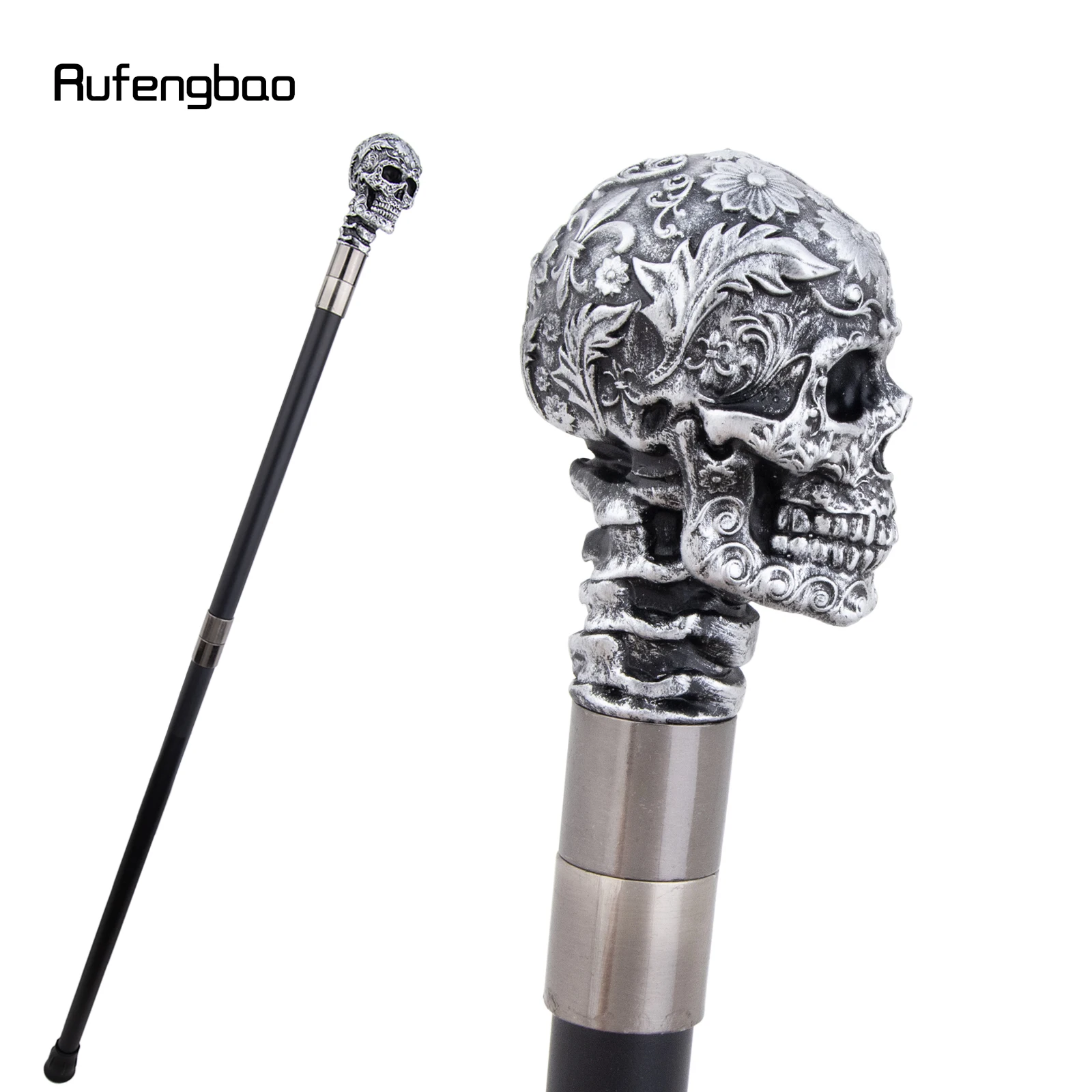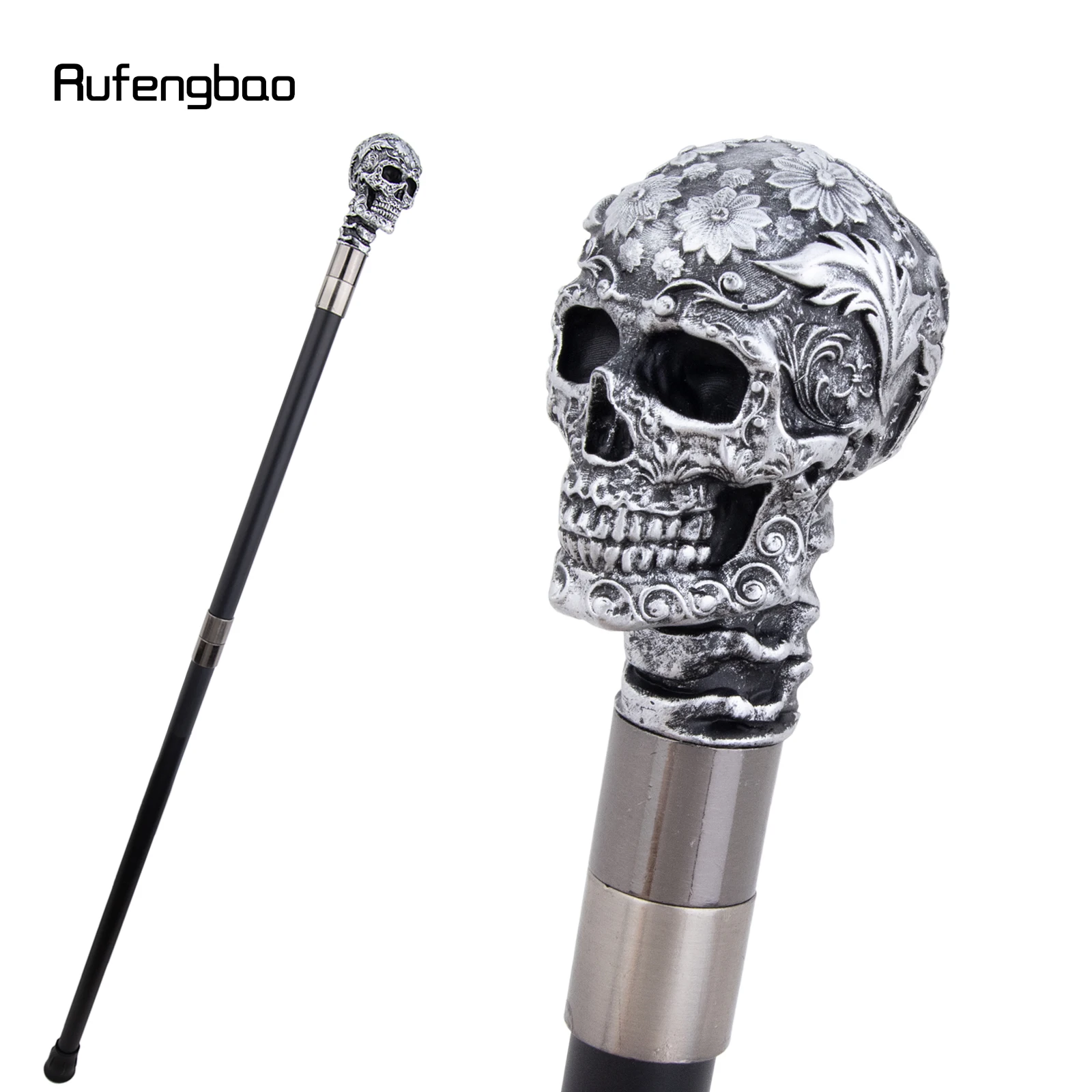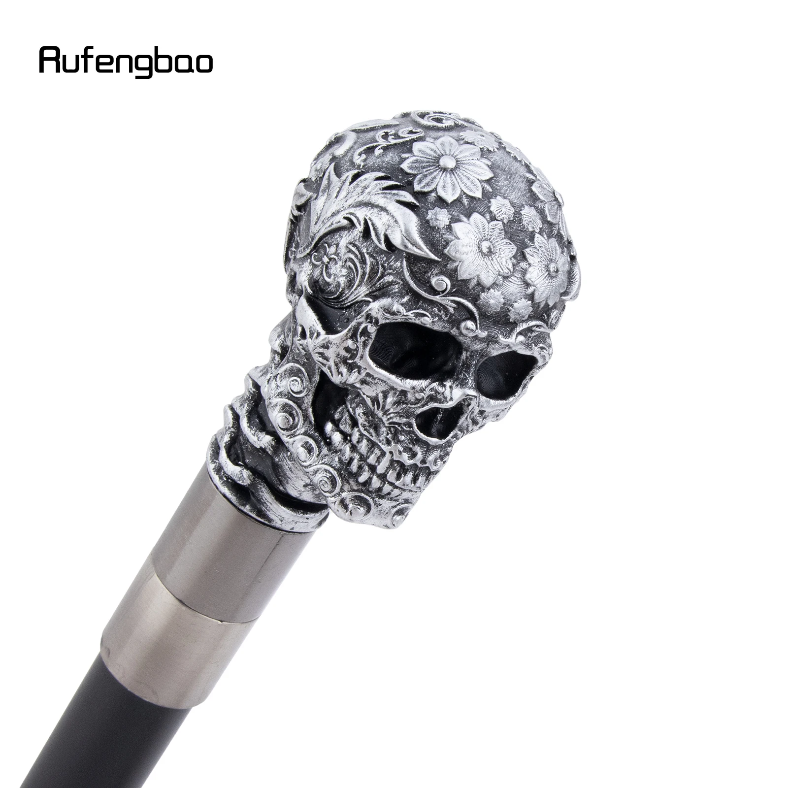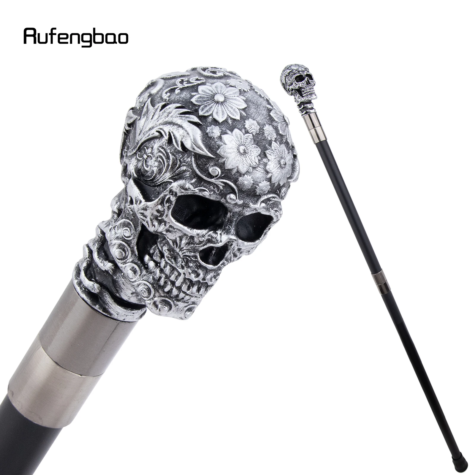 Canne de crâne de fleur de Rose en résine argentée canne de Cospaly décorative canne de scène de Performance d'halloween canne de scène de Performance de 94 cm
