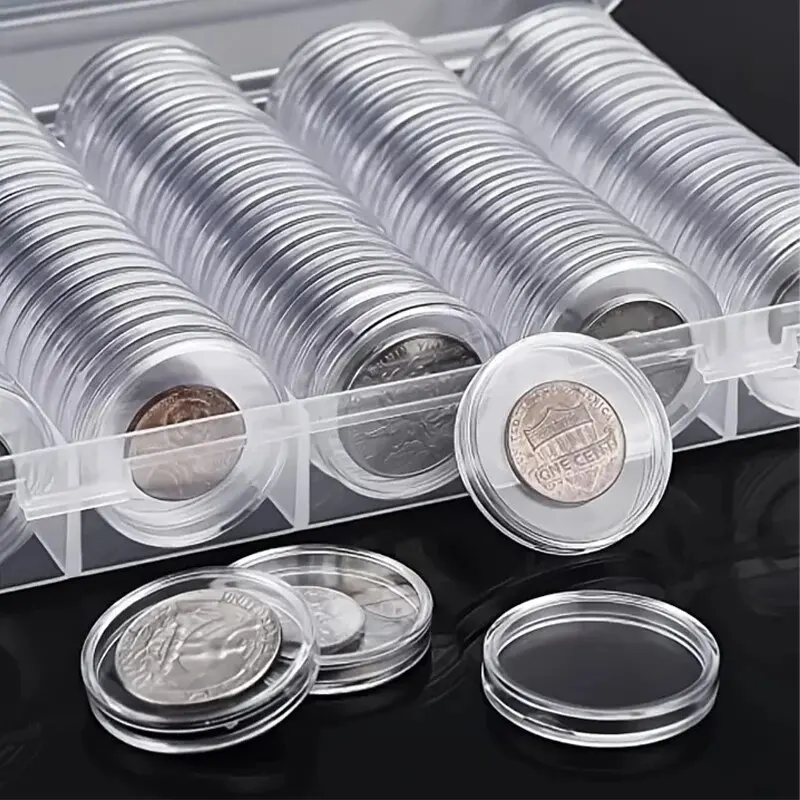 Capsules de pièces de monnaie rondes en plastique, boîte de collection de pièces de monnaie, boîte de rangement de pièces de monnaie, boîte de Protection de pièces de monnaie, cadeau de noël, Halloween, Thanksgiving