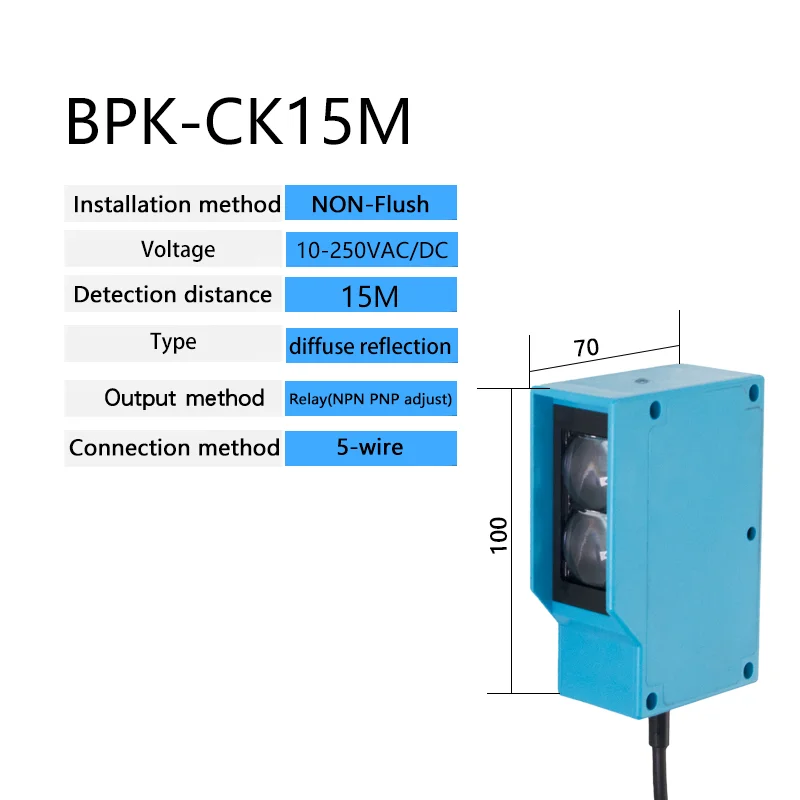 Capteur photoélectrique E3K 20m Distance de détection 10-30V capteur de réflexion Diffuse NPN PNP capteur de commutateur de relais optique