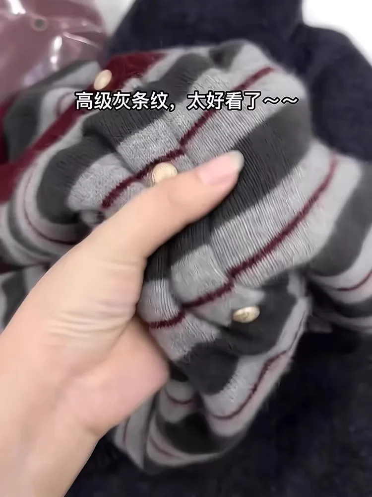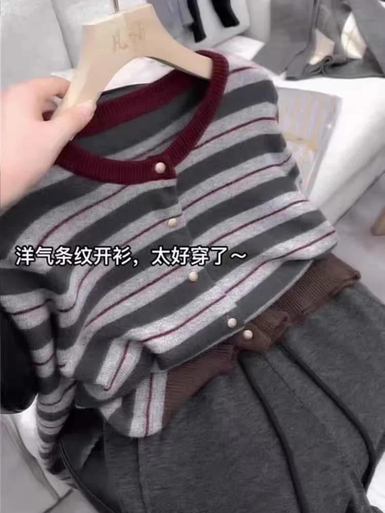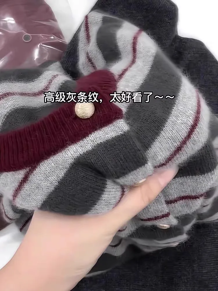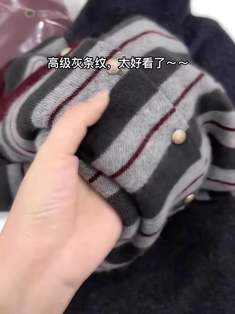 Cardigan en cachemire rayé pour femme, pull à col rond, manteau en laine douce, sens senior, produits européens, nouveau, printemps et automne, 107