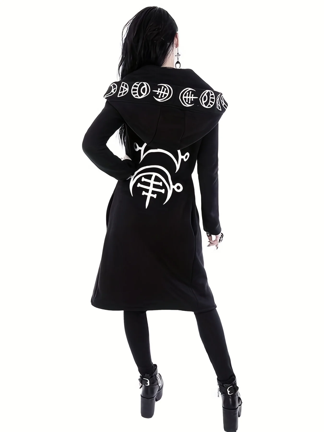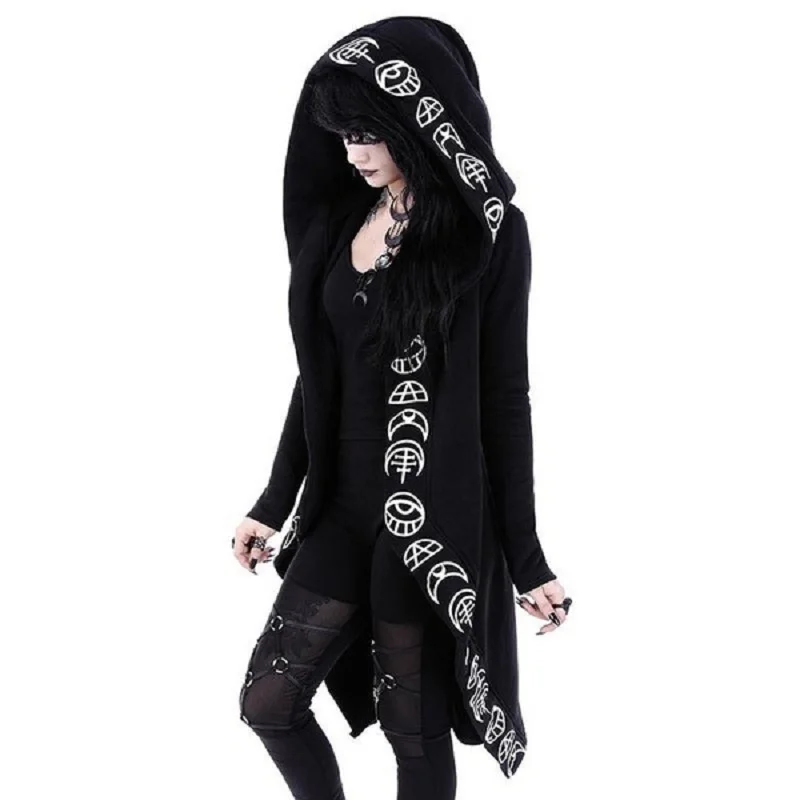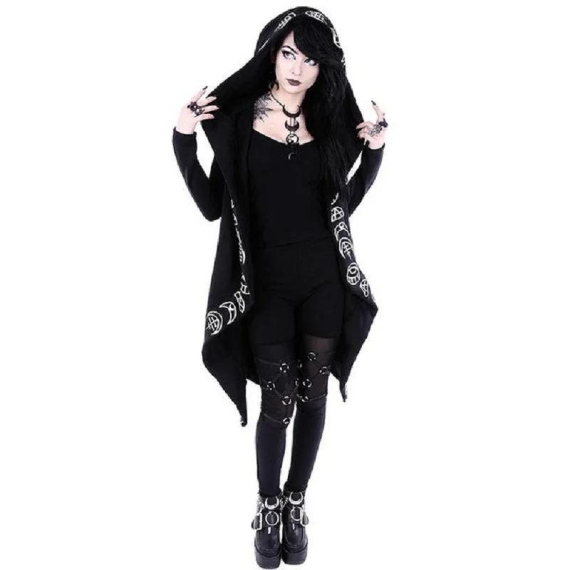 Cardigan imprimé à motif de lune punk pour dames, pull à manches longues, style long, tendance de la mode