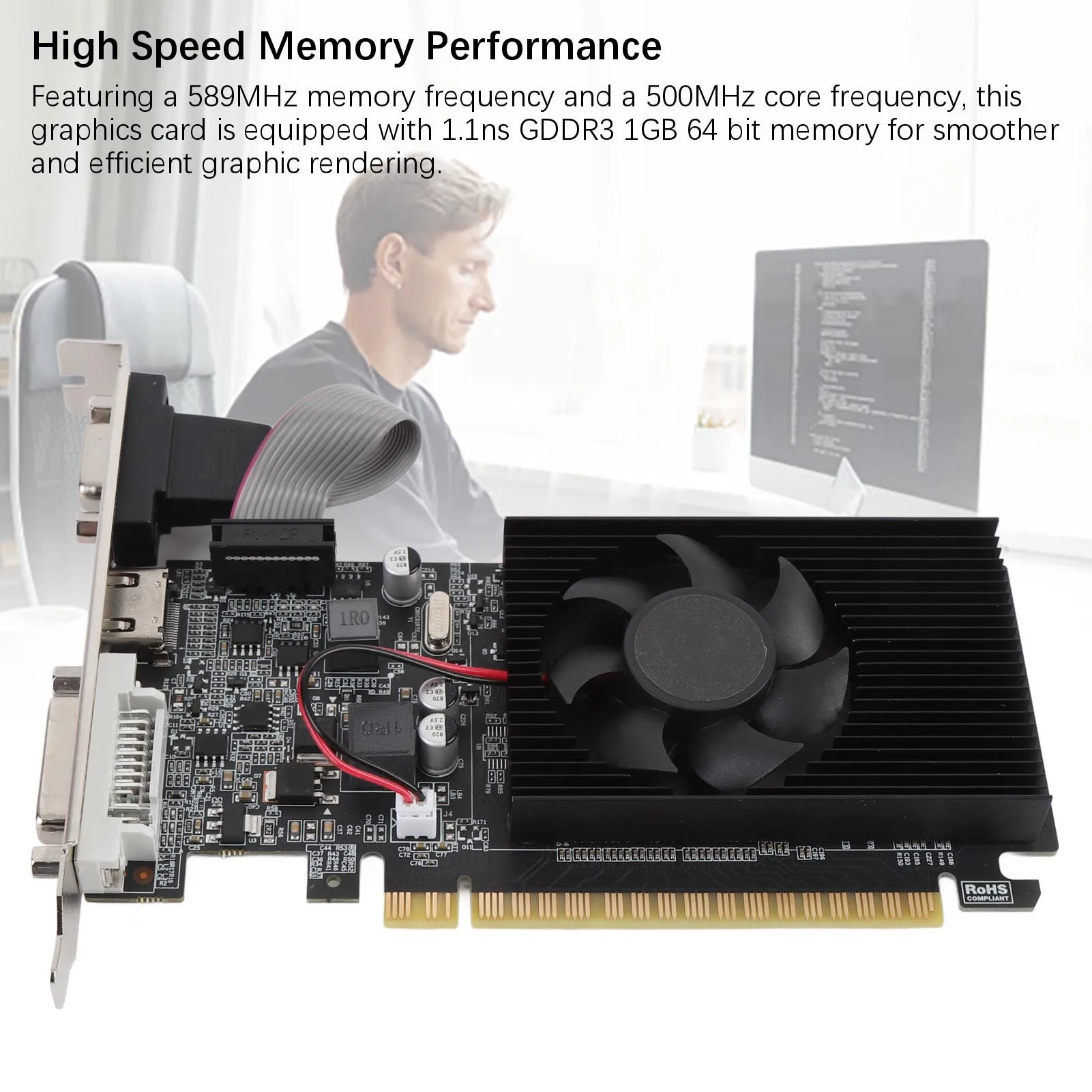 Carte graphique 1 Go DDR3 64 bits 500 MHz 589 MHz PCI Express 2.0 16X Carte vidéo PC avec interface multimédia VGA DVI HD pour le travail