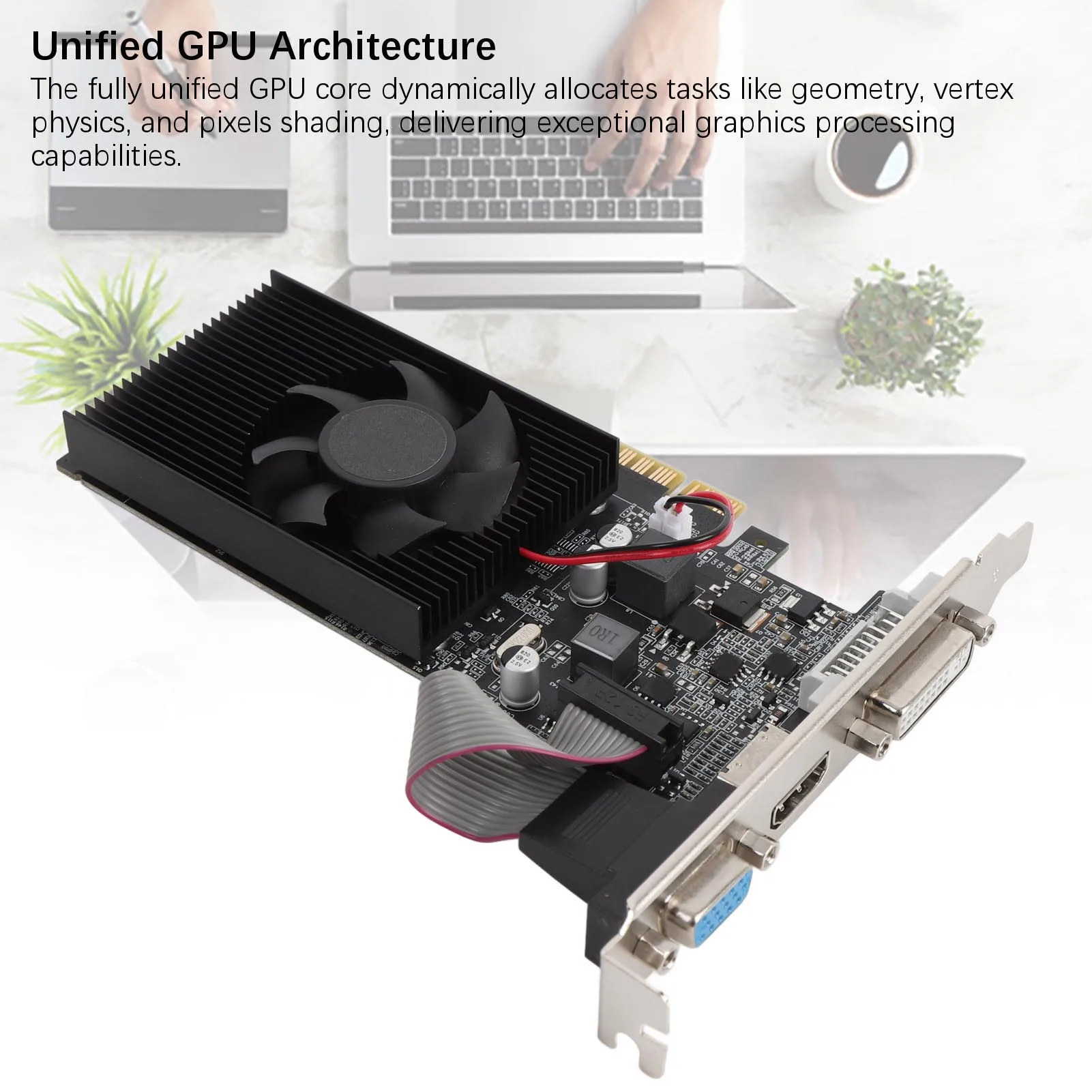 3.Options de connectivité polyvalentes : équipée d'une interface multimédia HD, d'interfaces DVI et VGA, cette carte vidéo répond aux besoins des utilisateurs grand public en matière de connectivité multimédia haute définition et d'affichage.