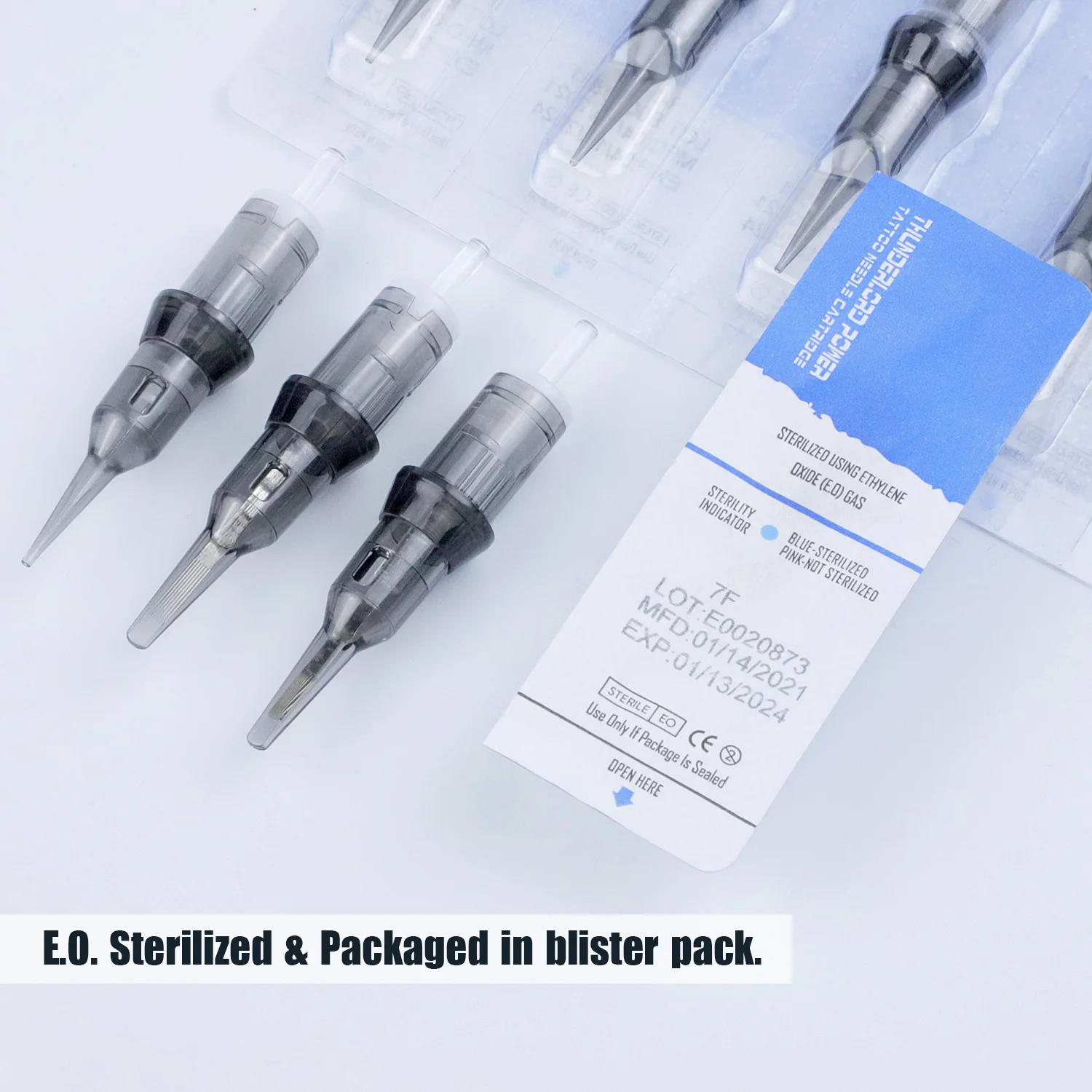 9.L'aiguille de tatouage à cartouche est en acier inoxydable médical 316 et 100 % E.O.stérilisé et emballé dans un blister.