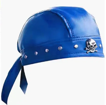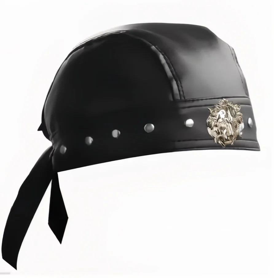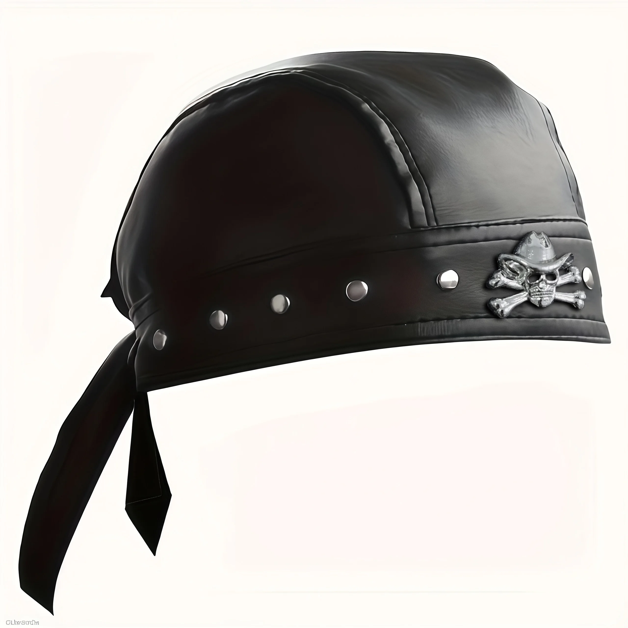 Casque de moto Bandana crâne en cuir noir – Cadeau d'Halloween paresseux pour cosplay de motard urbain