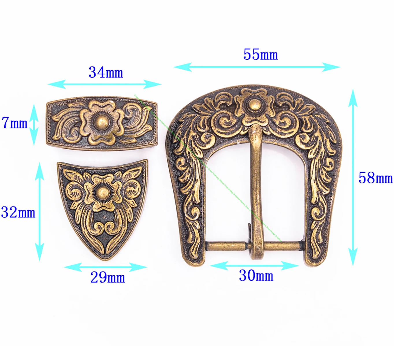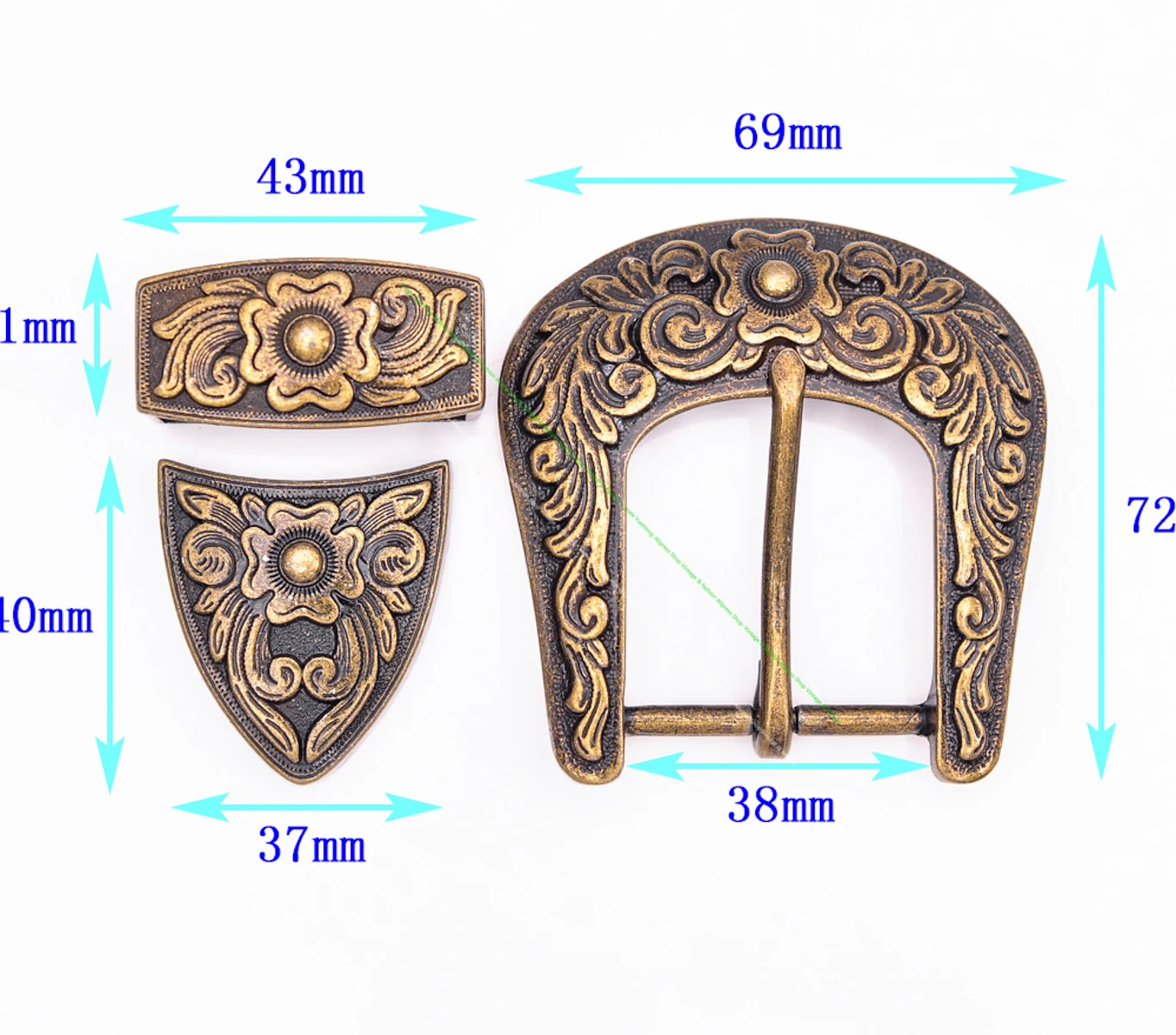 Ceinture de maroquinerie sculptée en laiton vintage, pointes de boucle rodéo, Texas Western Cowboy Ranger, 25mm, 30mm, 38mm, ensemble de 3 pièces