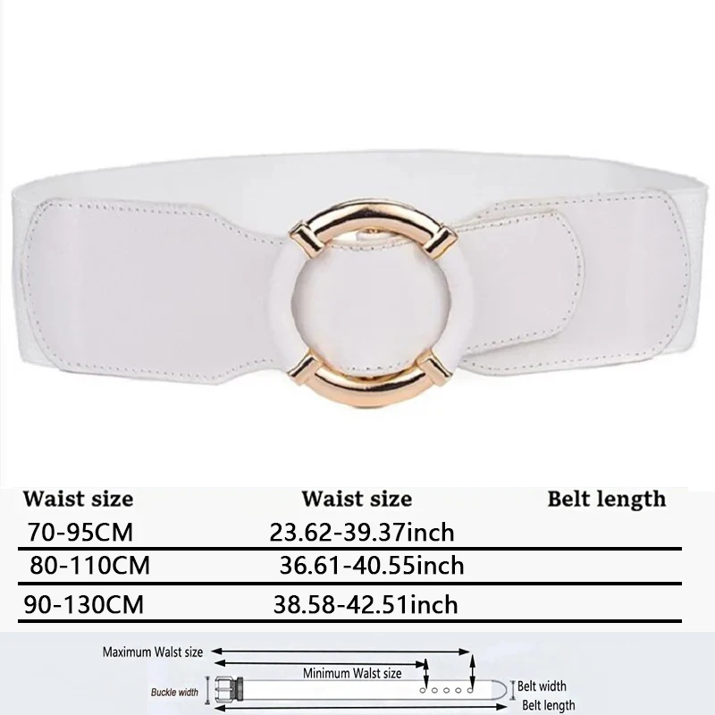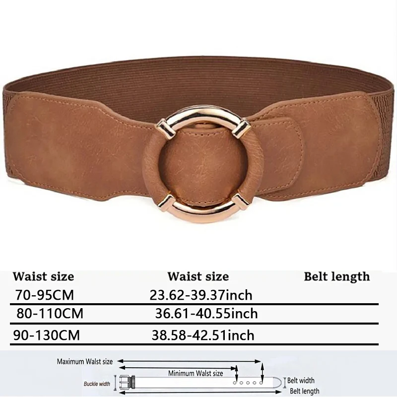 Ceinture élastique pour femmes, Corset, tendance, boucle circulaire dorée, haute qualité, extensible, large, noire, DT072