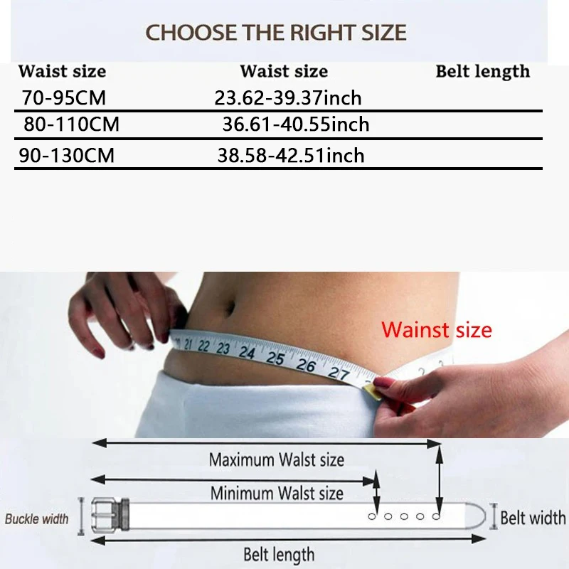 Tour de taille : 70CM--70-90CM/27,55 pouces-35,43 pouces 80CM--80-110CM/31.49 pouces-43,30 pouces 90 CM --- 90-130 CM/35,43 pouces-51,18 pouces