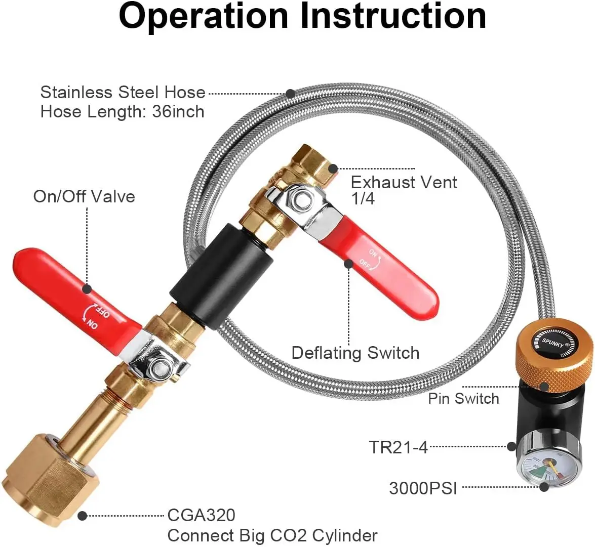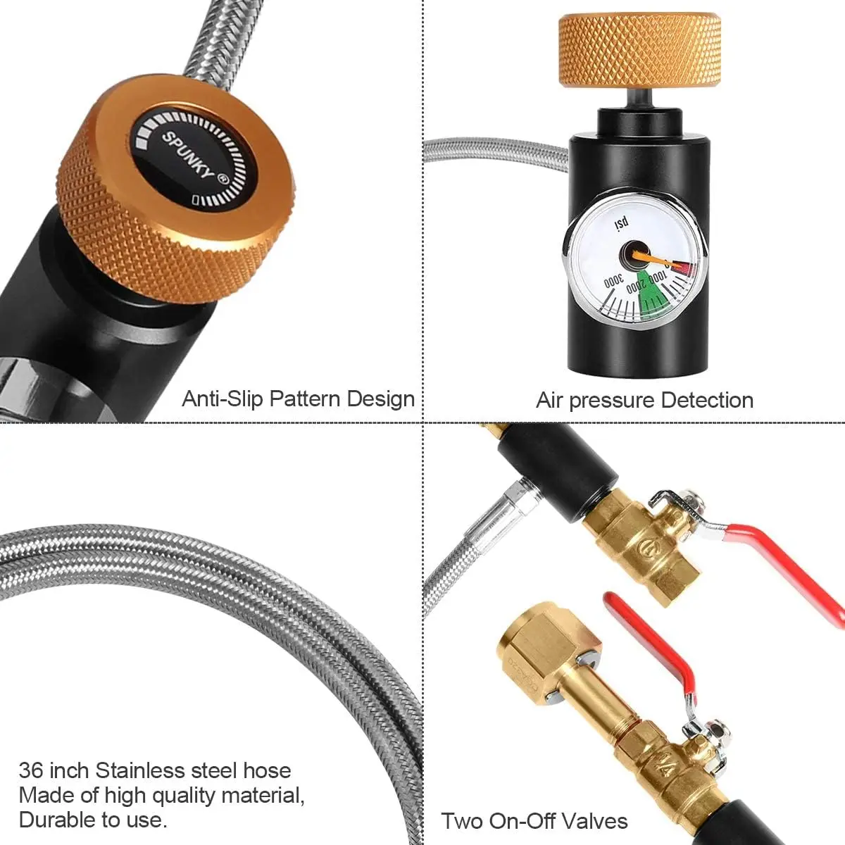 Nouvelle station de remplissage CO2 à double valve de luxe avec tuyau tressé de 36"