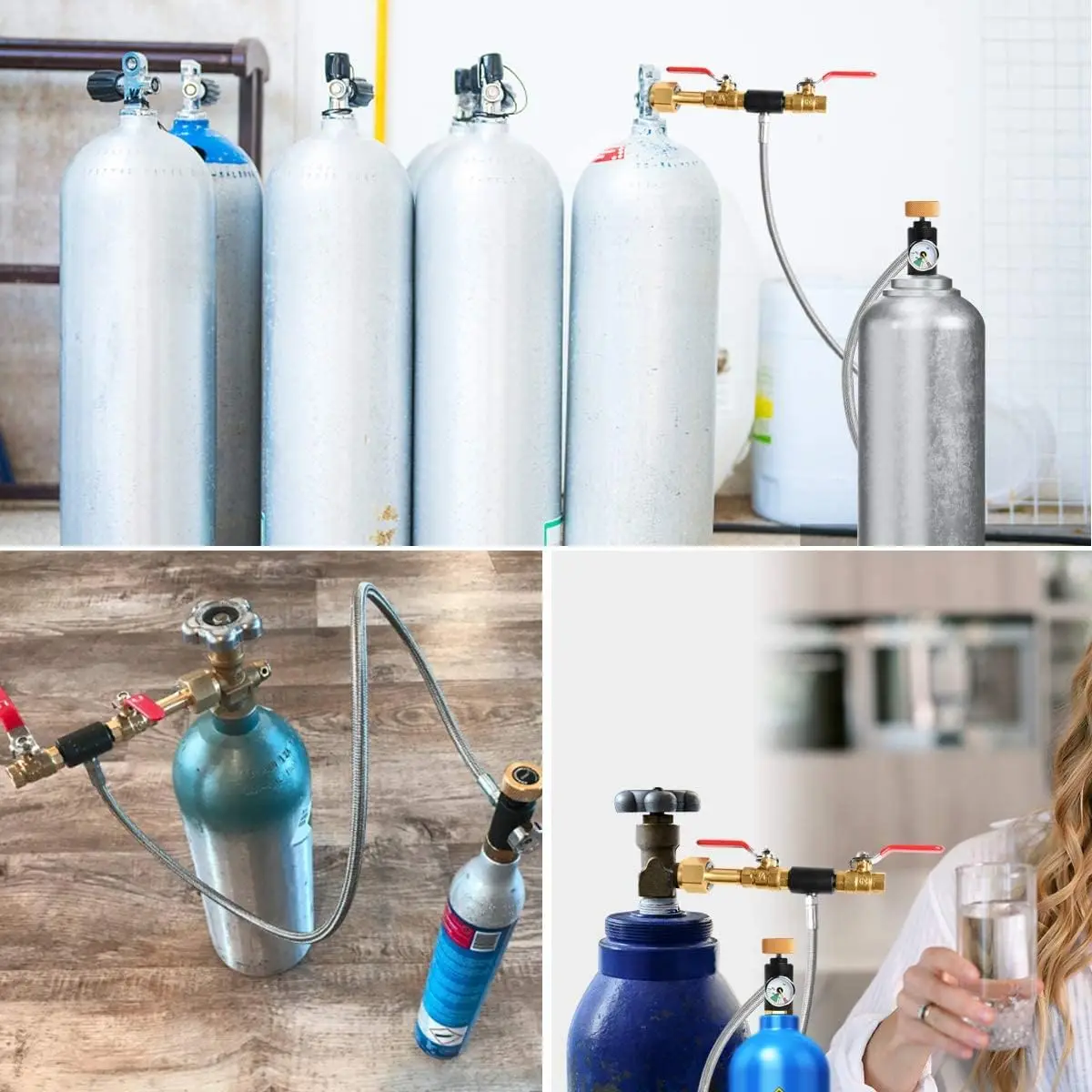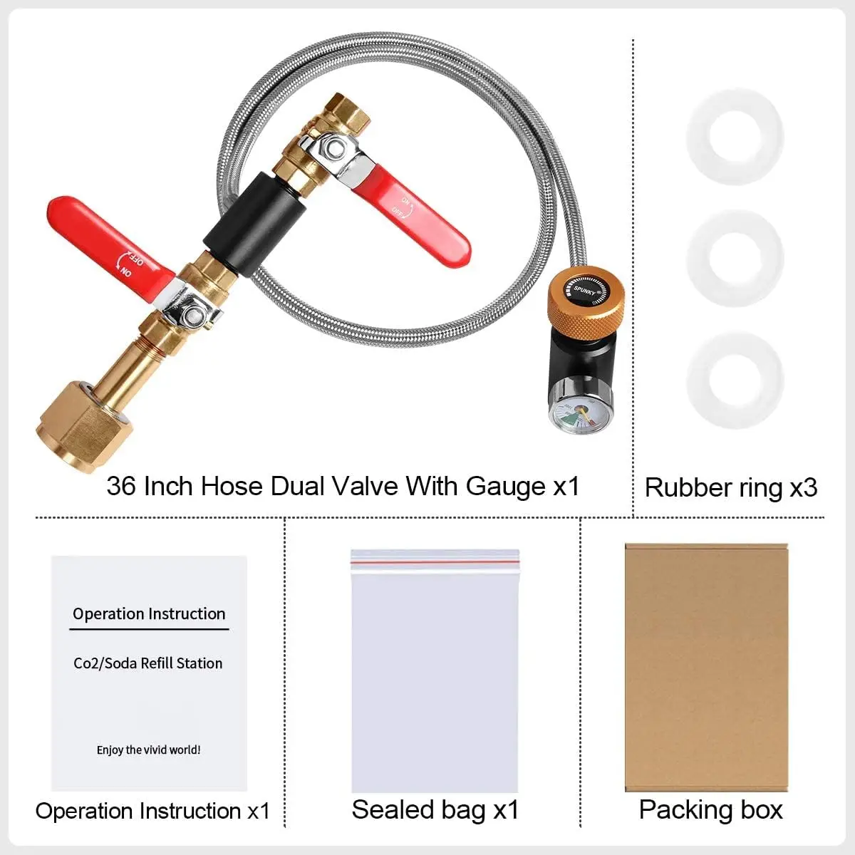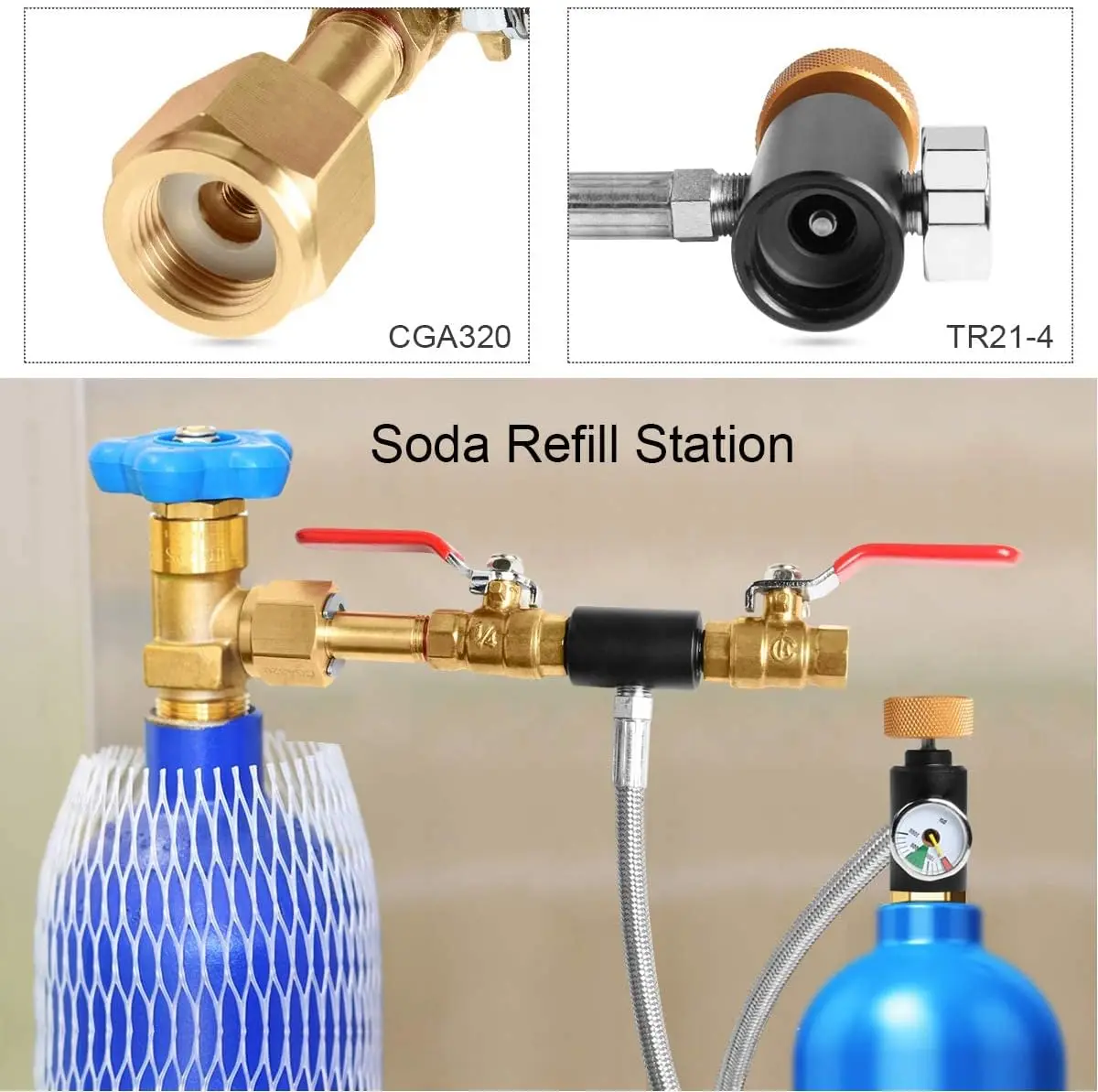 Kit de connecteur de Station de remplissage d'adaptateur de cylindre de recharge de CO2 de W21.8-14 CGA320 pour le remplissage de fabricant de soda tuyau de 36 pouces double valve avec jauge