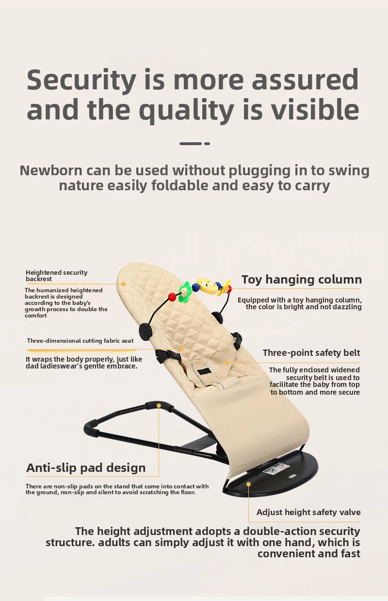 Équipé de fonctions de sécurité, ce videur pour bébé assure la sécurité de votre enfant tout en profitant du mouvement de swing apaisant.