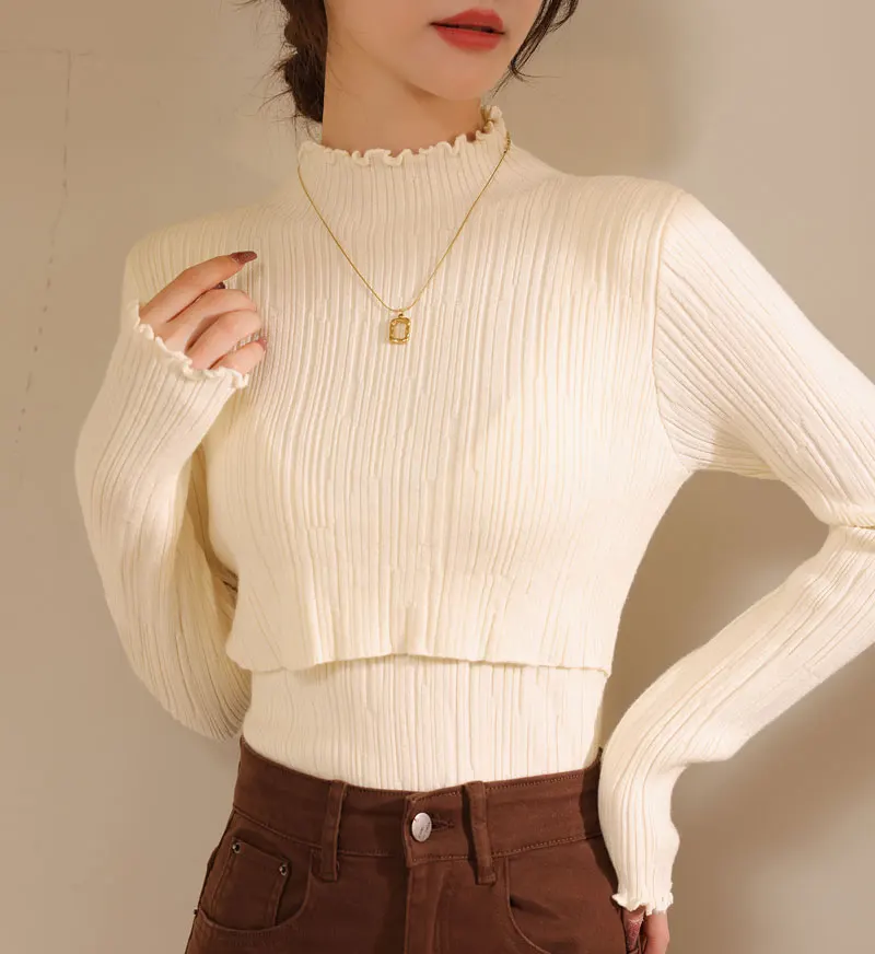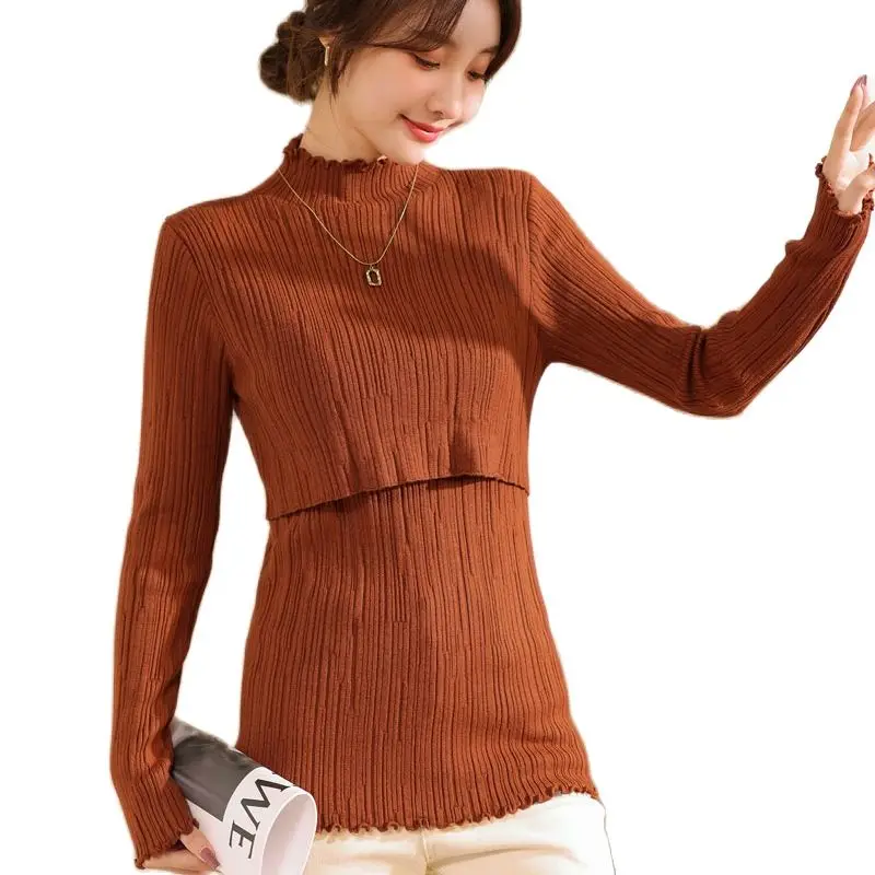 Chandails d'allaitement d'hiver à manches longues et col roulé, vêtements d'allaitement de maternité post-partum pour femme, tricot d'allaitement, couleur unie