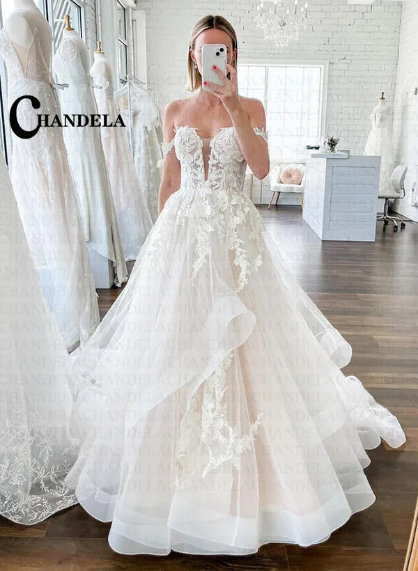 CHANDELA hors de l'épaule princesse plage robe de mariée pour les femmes 2025 sans manches mariée volants robe de mariée robes personnalisées