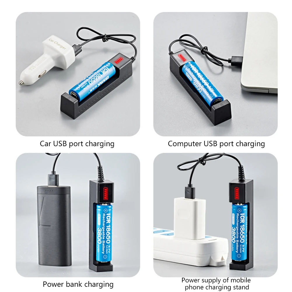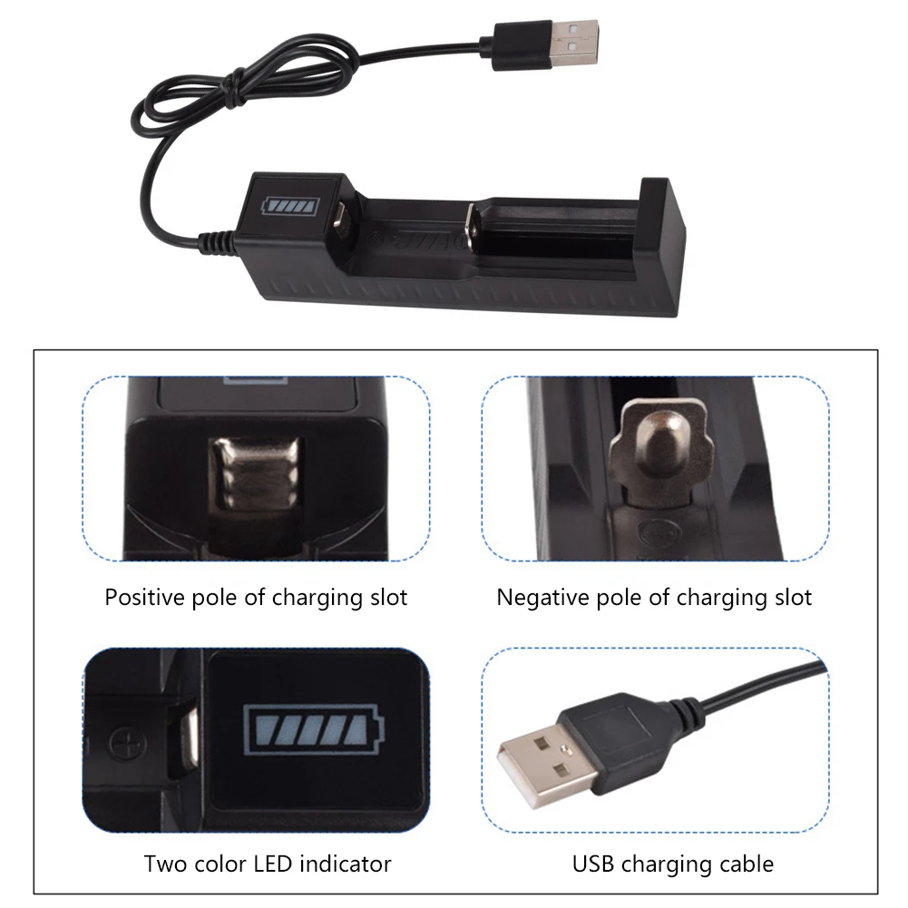 Chargeur de batterie au lithium aste, charge rapide USB, 1 emplacement, 16340, 14500, 18650, 26650, 3.7V