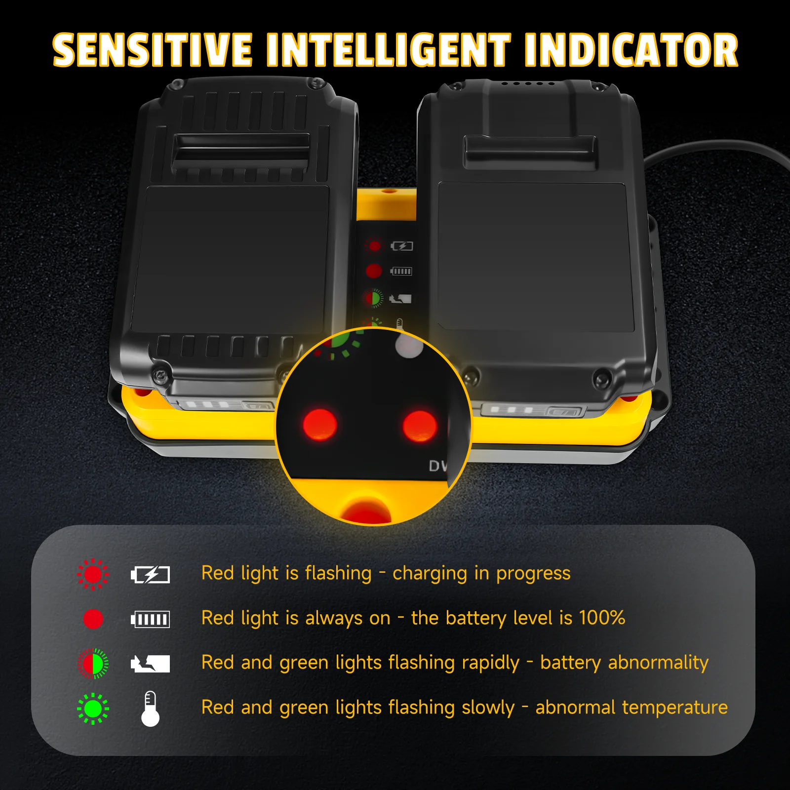 Large compatibilité : conçu pour être compatible avec une gamme de batteries pour outils Dewalt, y compris les modèles 18 V-20 V MAX, ce qui en fait un ajout polyvalent à votre bote à outils.