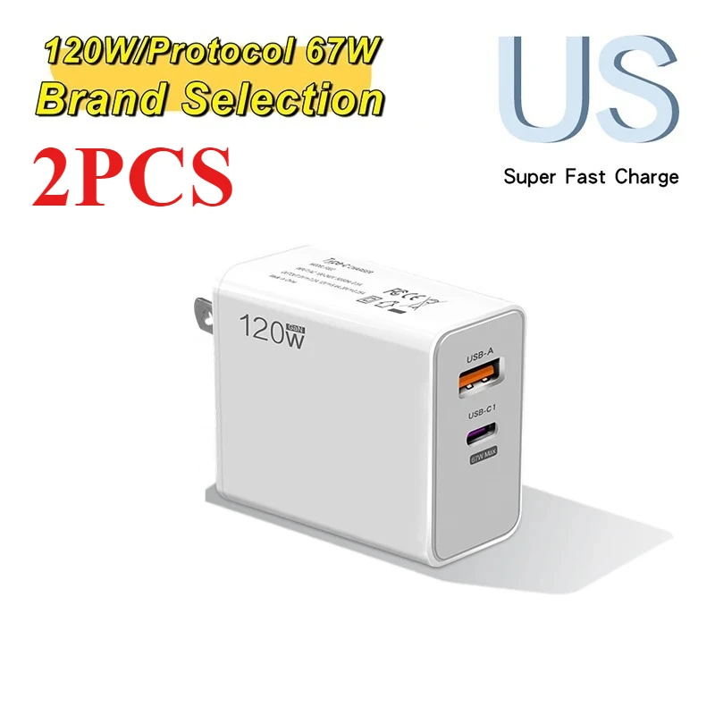 Chargeur rapide USB 120W avec câble de Type C, adaptateur de charge rapide pour téléphones portables iPhone 16 Samsung Xiaomi Huawei PD