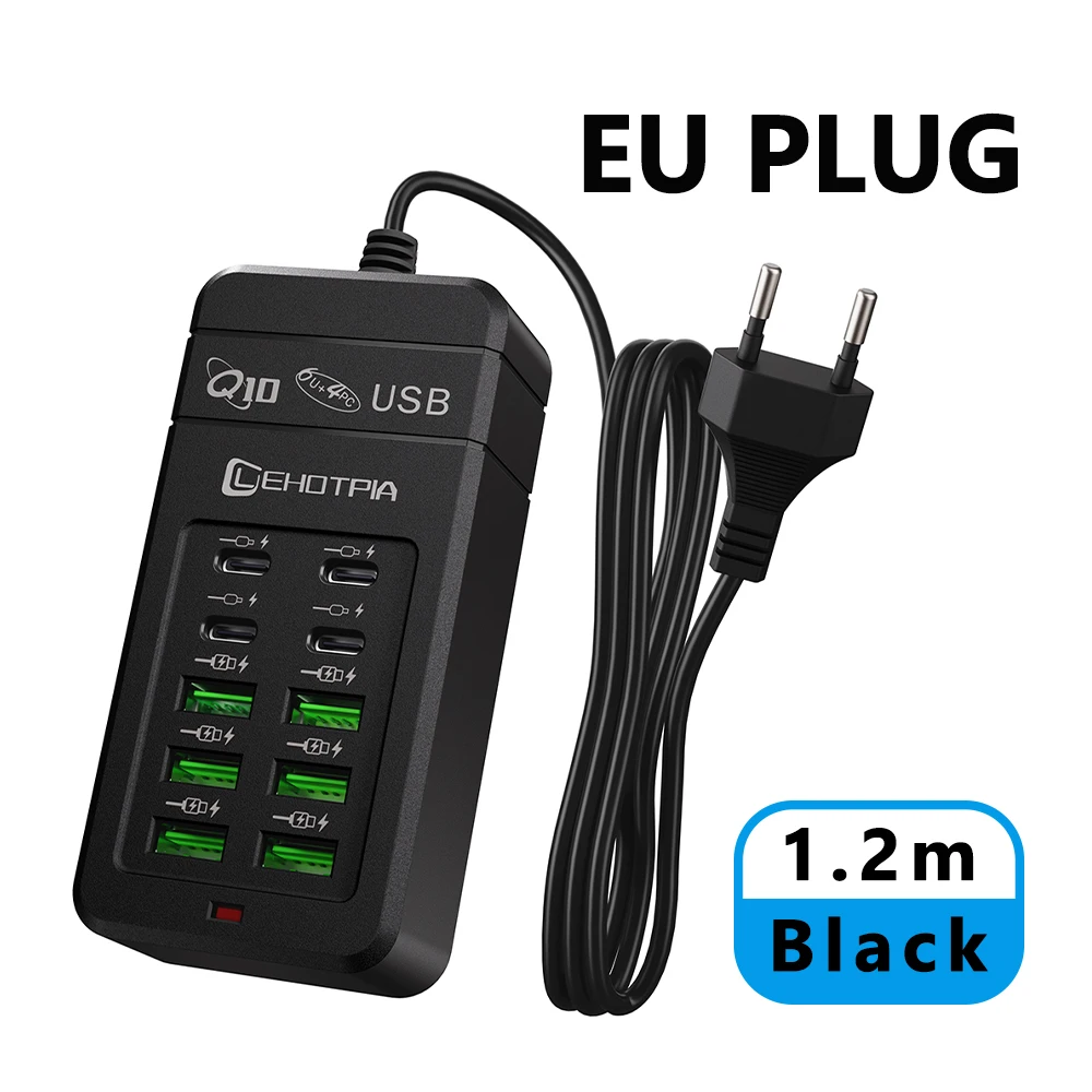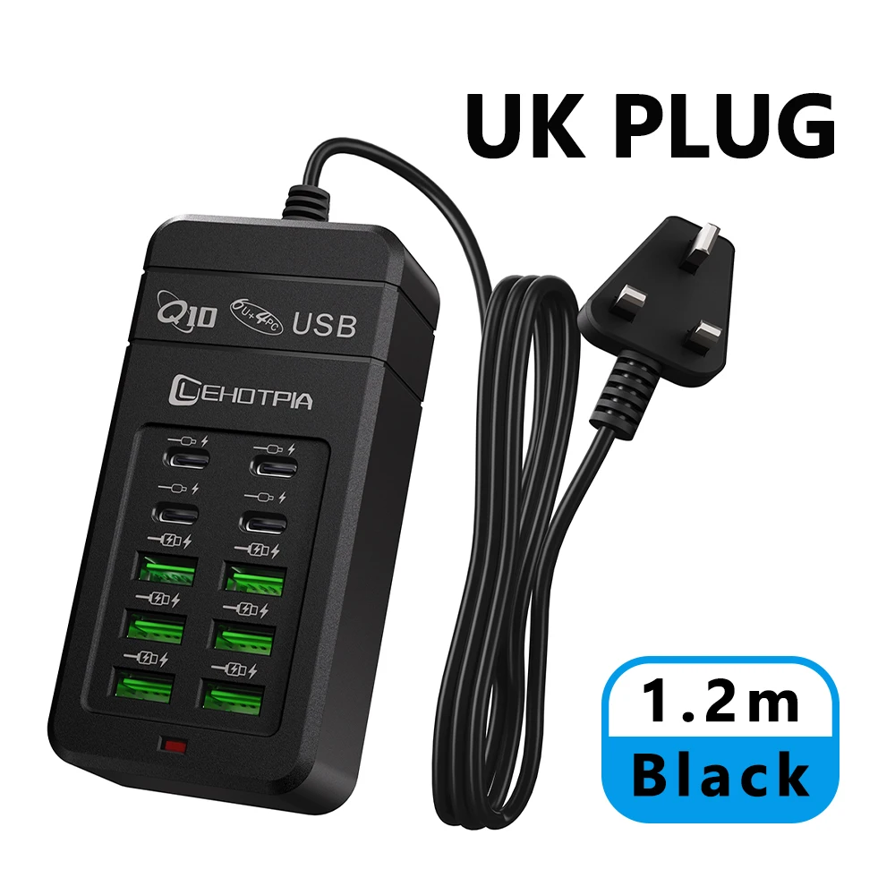 Chargeur USB rapide Multiple, prise ue UK US, adaptateur d'alimentation, rallonge de 1.2m, 6 USB-A 4 USB-C, Portable pour téléphone Portable