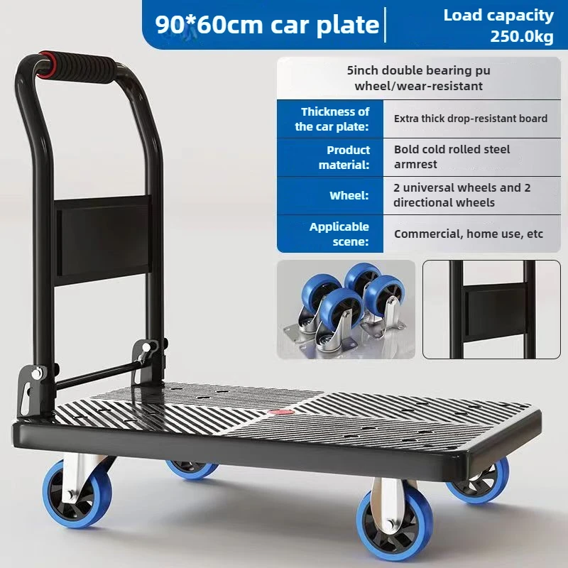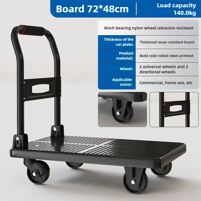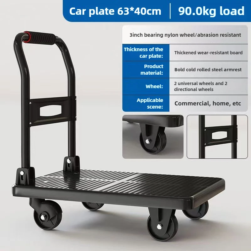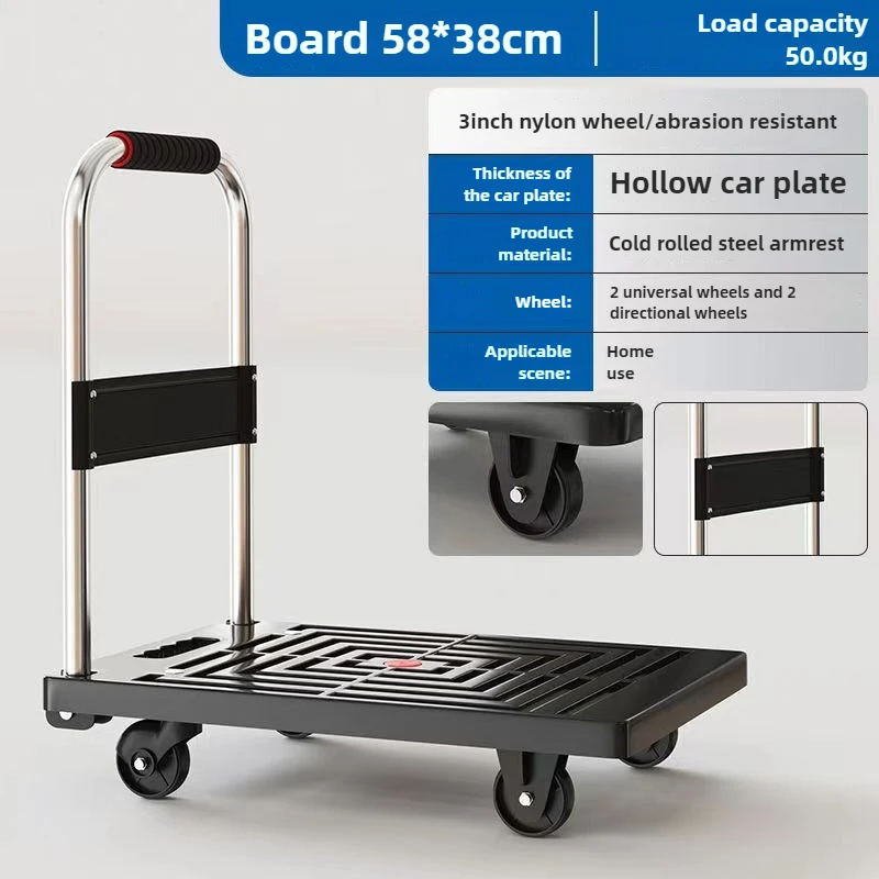 Chariot à plat à quatre roues pour tirer des marchandises, camion de poussée des marchandises, chariot pliant, remorque express
